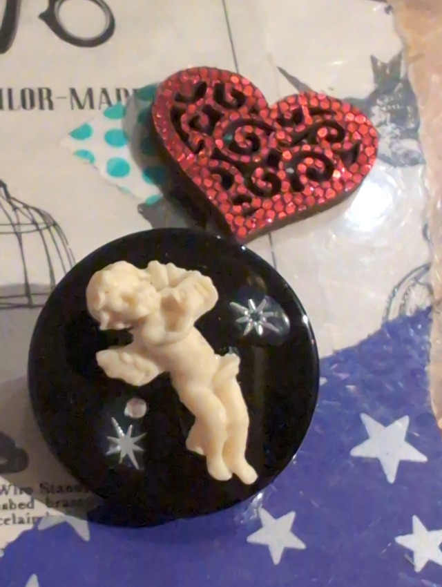 ブローチ ブラックオニキス プレートにエンジェルのコラージュ