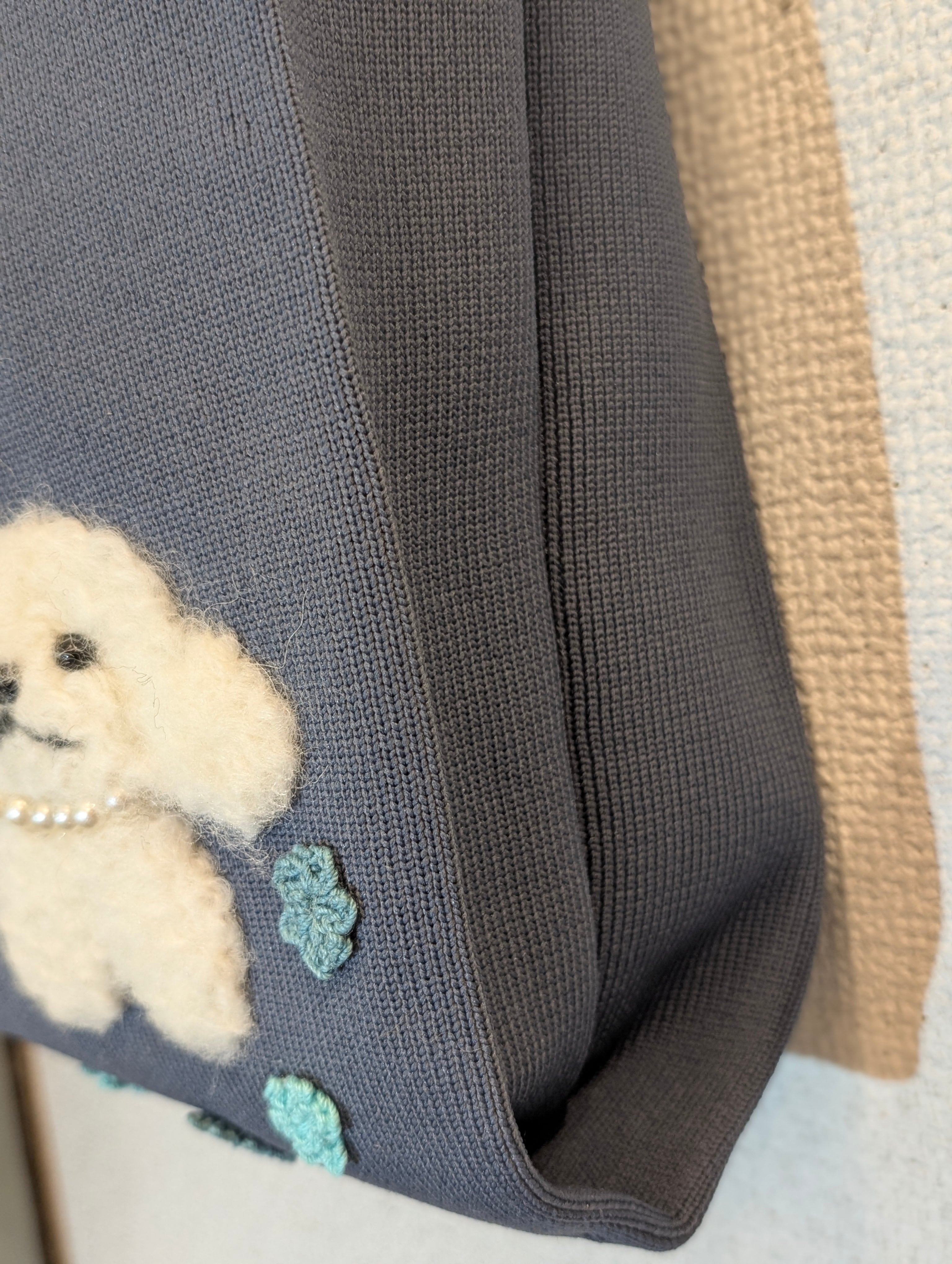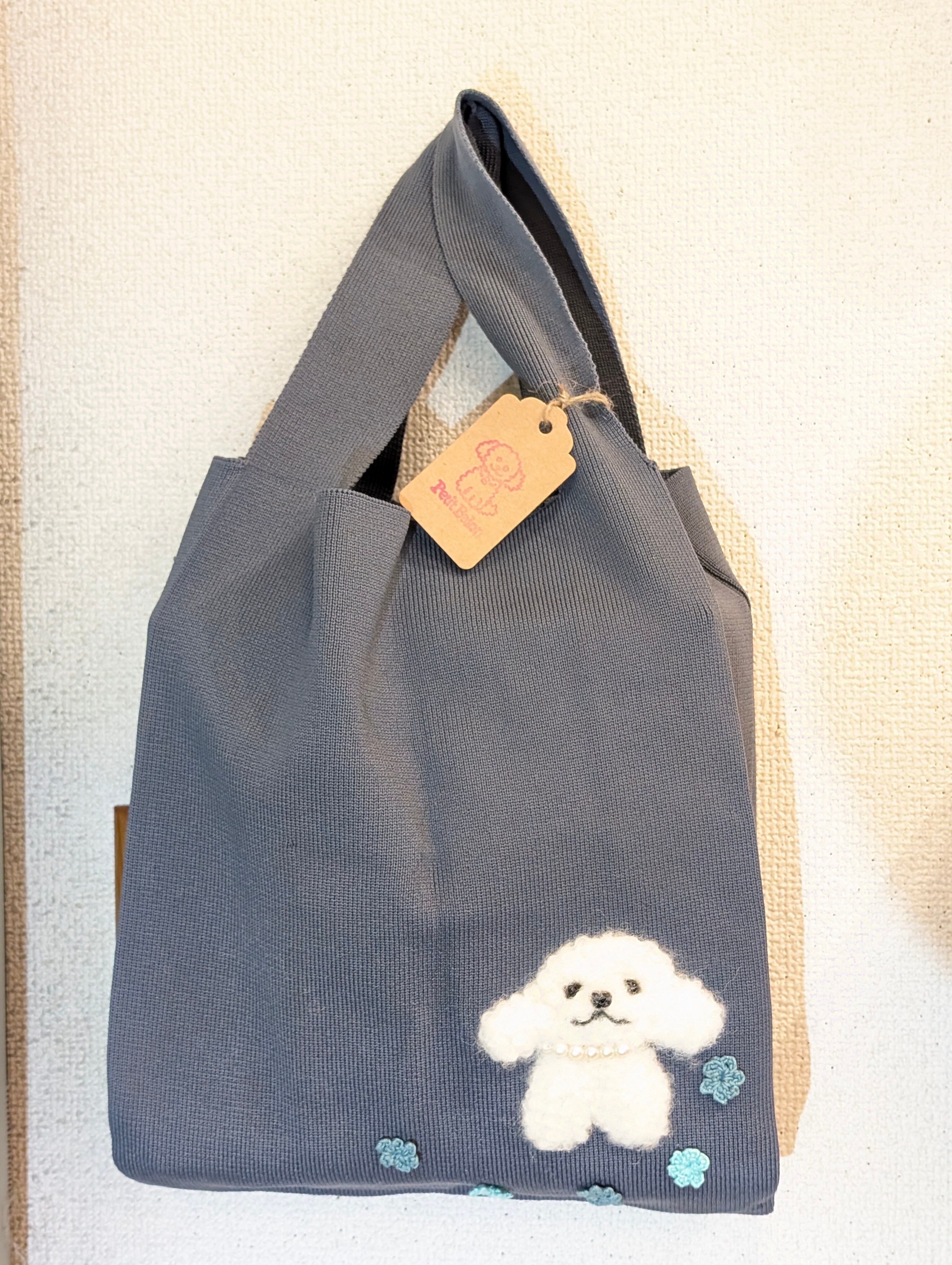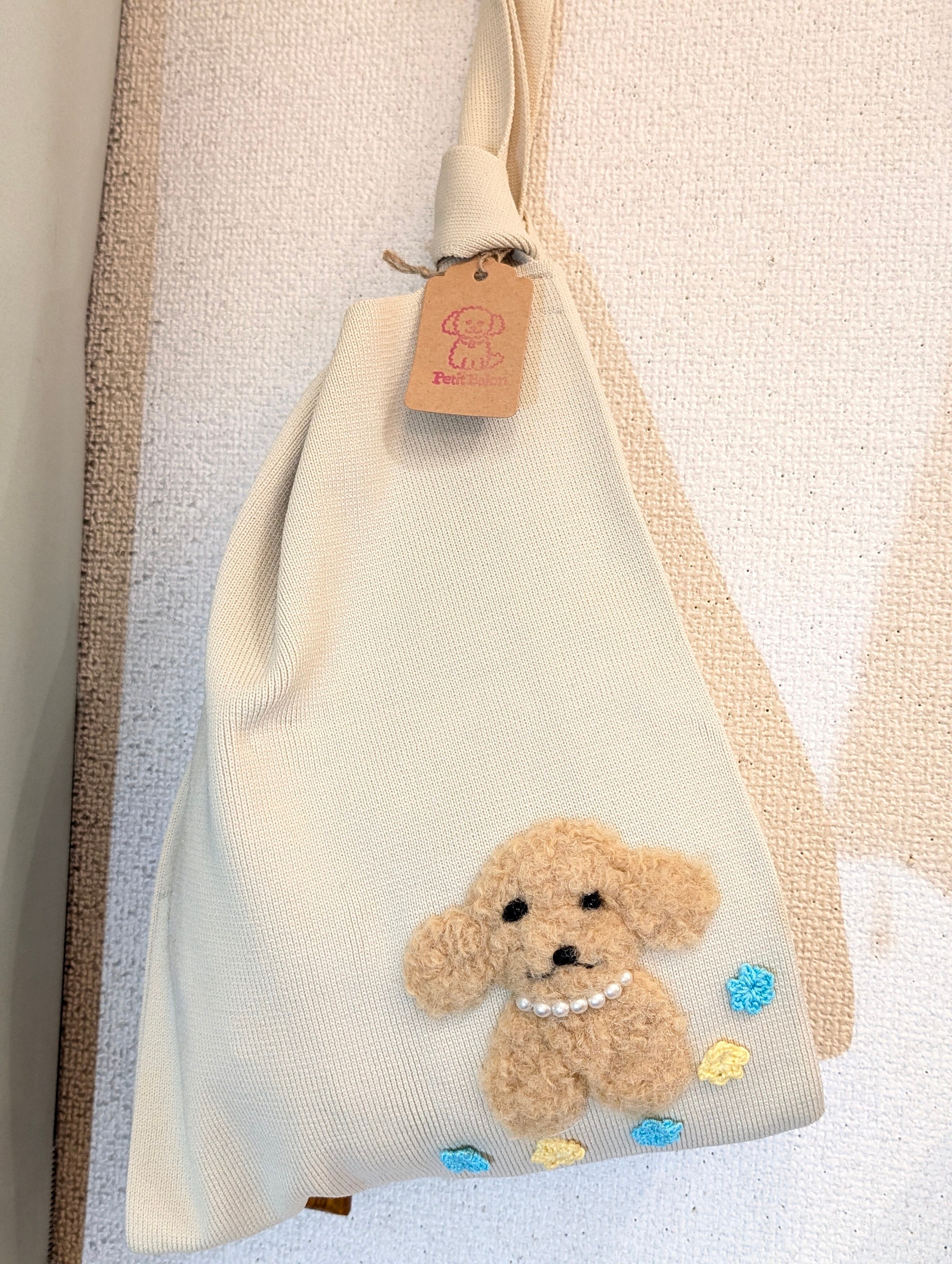 ニットバッグ ふわもこドッグA4 ジャージ素材 コンビニバッグ型 ふわもこ ハンドメイド ギフトに! プレゼントに!トイプードル 激かわ❤️ Petit Balon 作品
