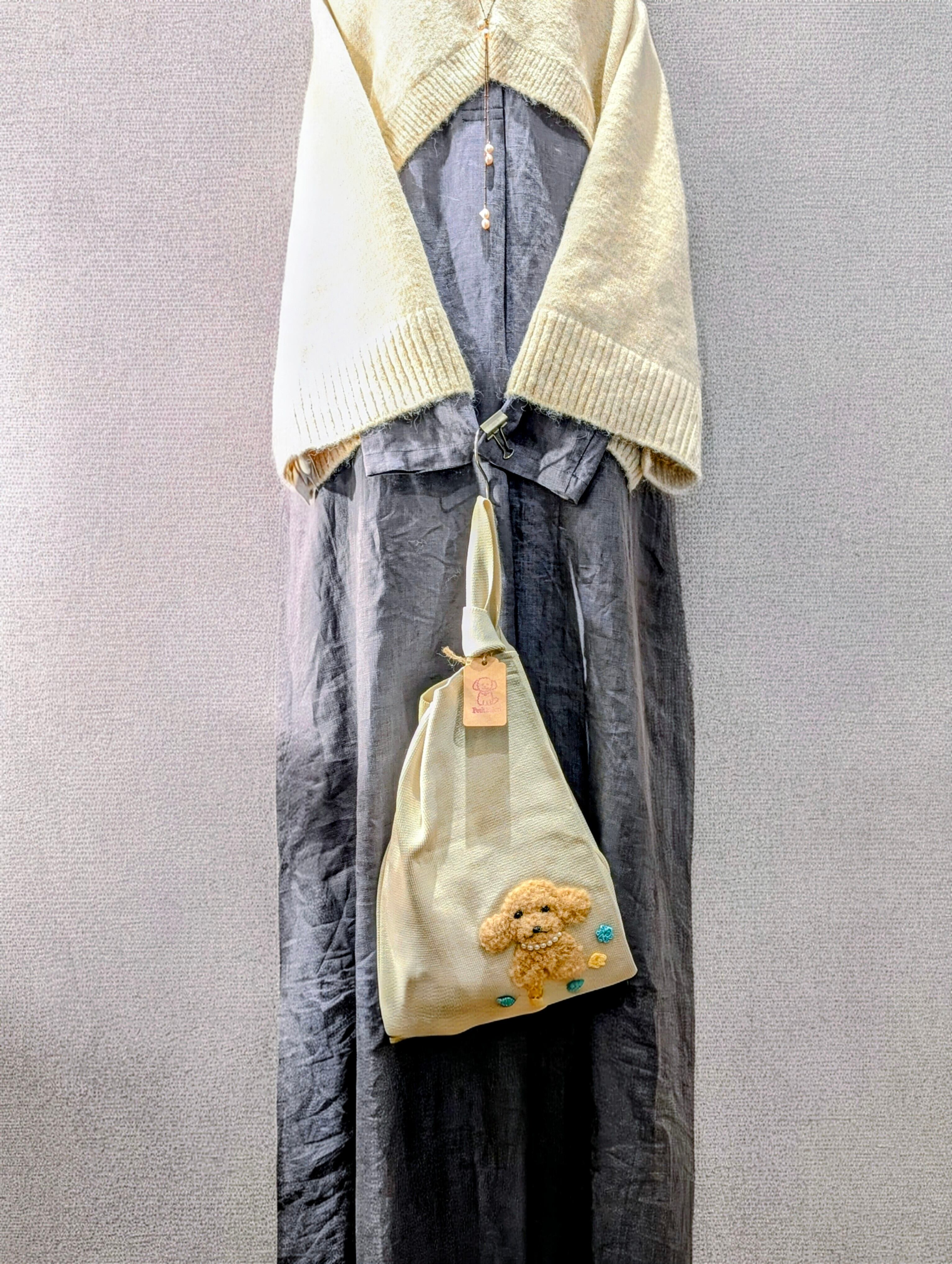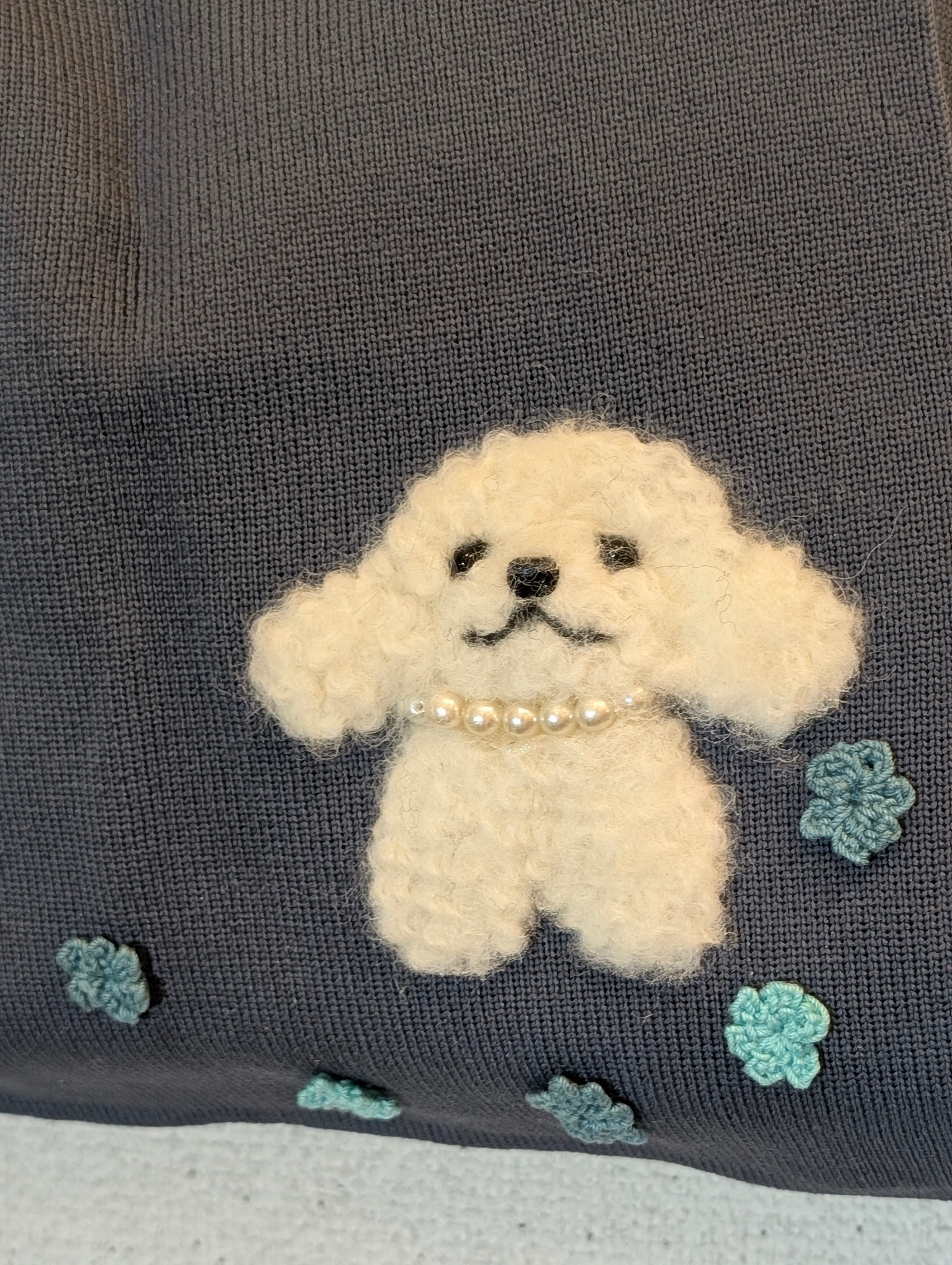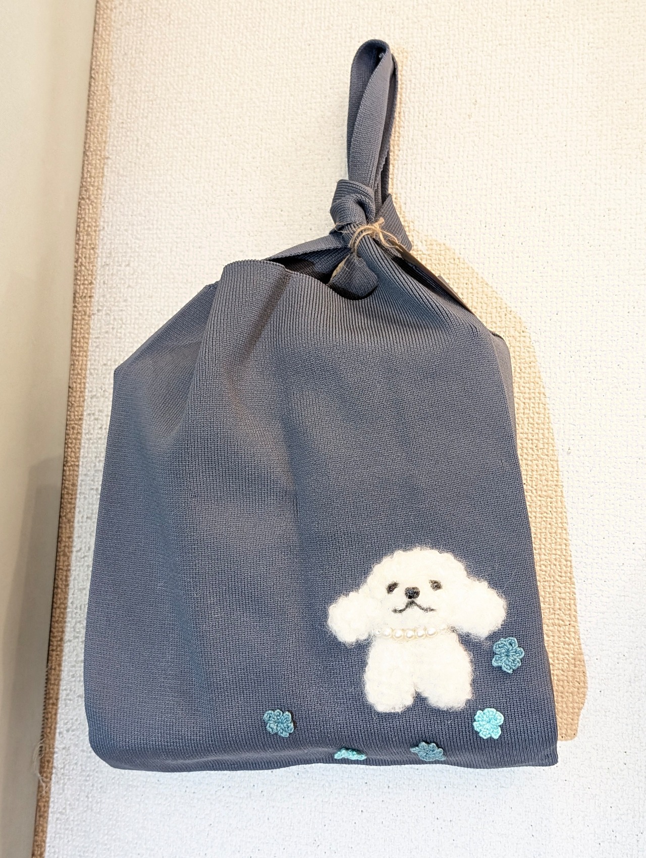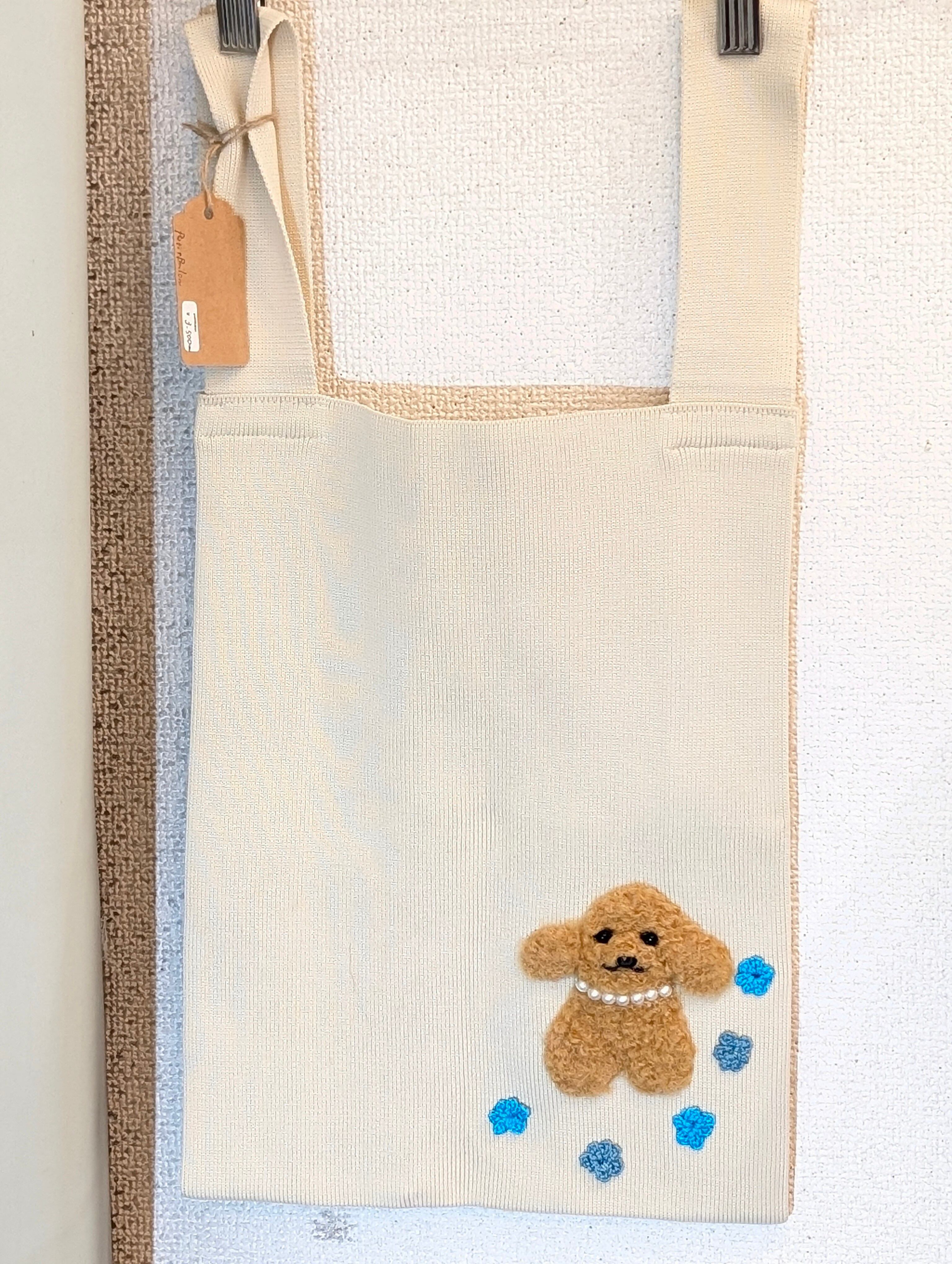 ニットバッグ ふわもこドッグA4 ジャージ素材 コンビニバッグ型 ふわもこ ハンドメイド ギフトに! プレゼントに!トイプードル 激かわ❤️ Petit Balon 作品
