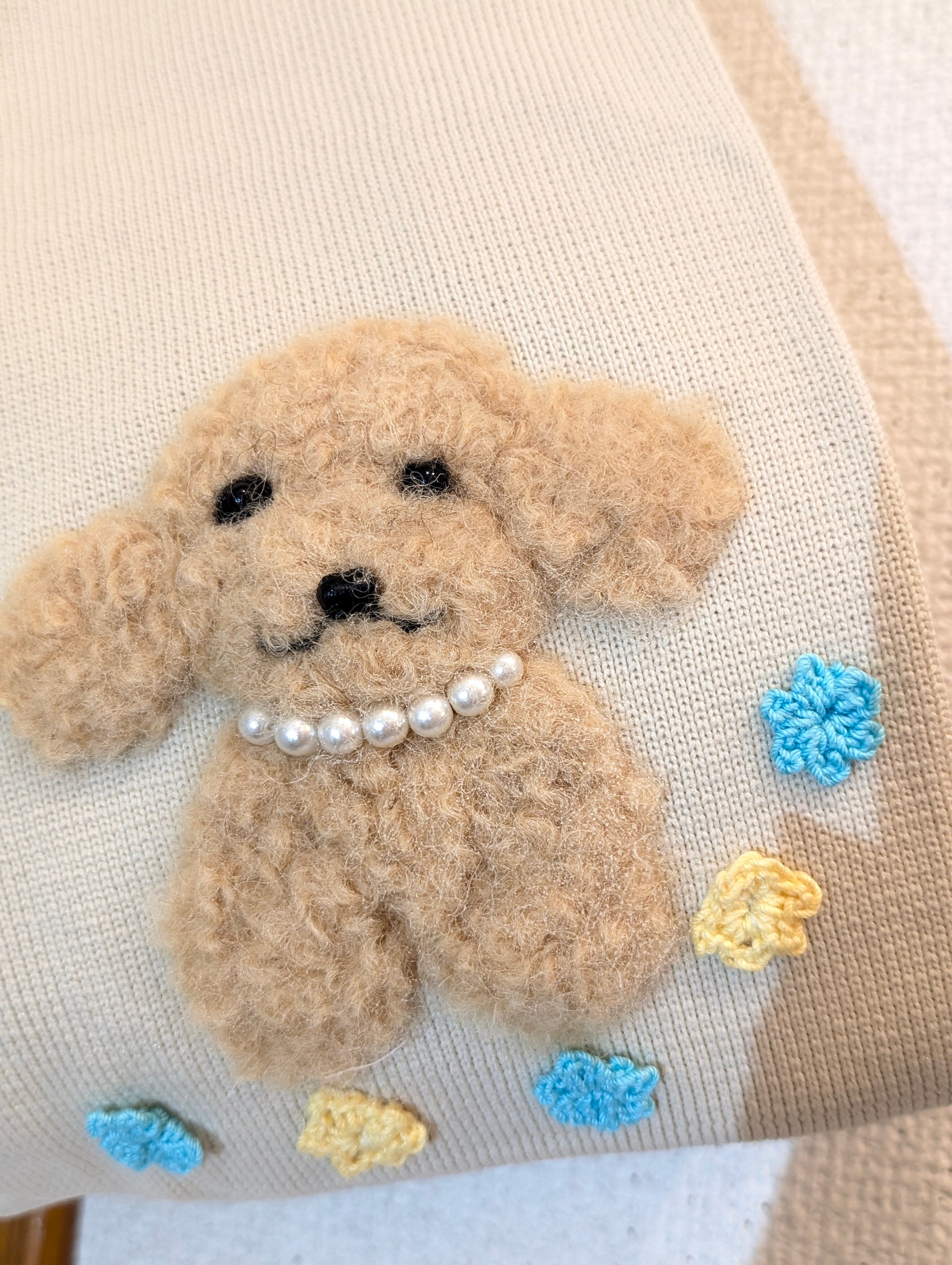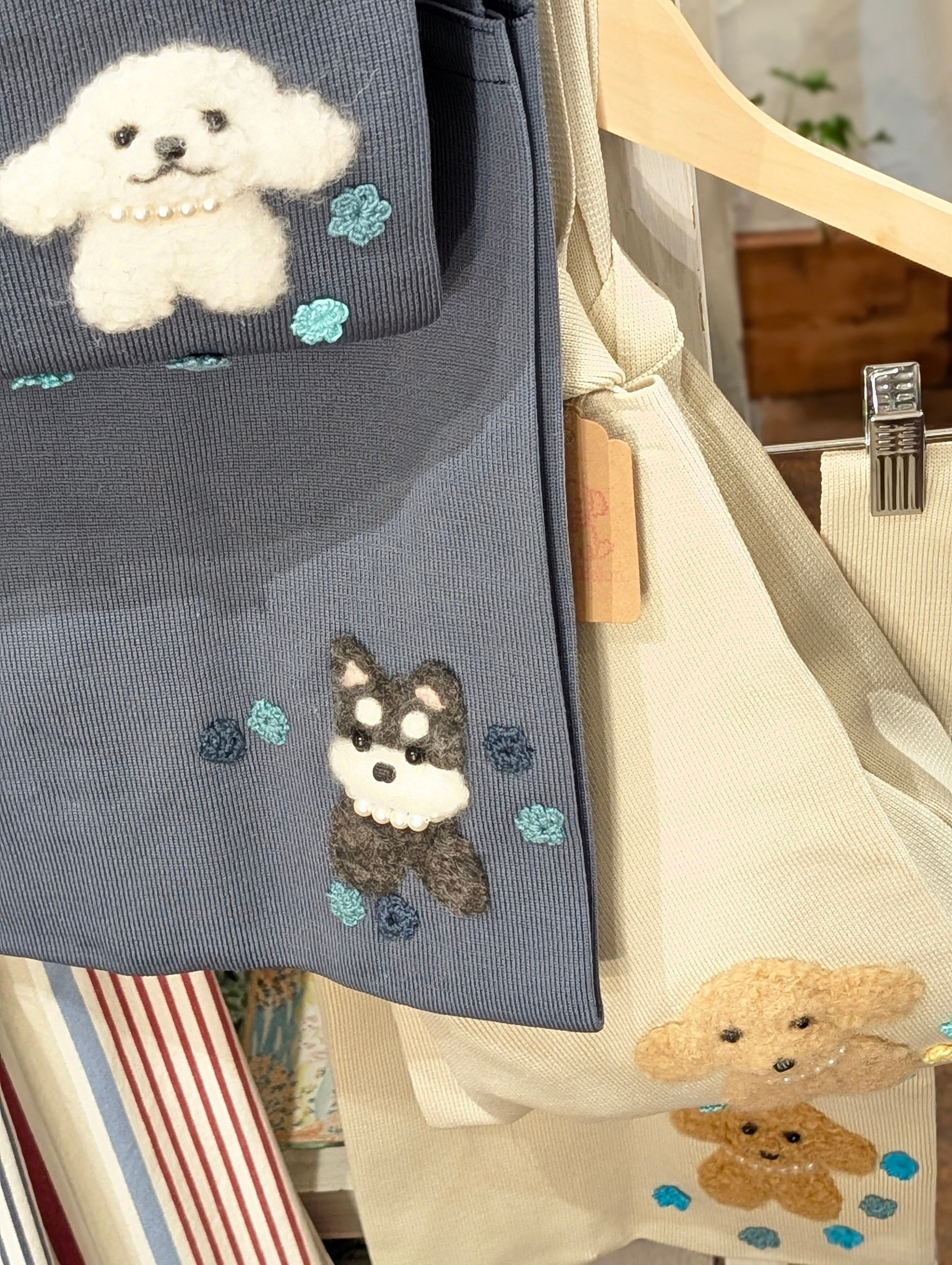 ニードル ポイントフェルトの技を使って作ったかわいい表情としぐさがなんともキュートな トイプードル や、犬のアイテムを作っているクリエイターさんの作品です。