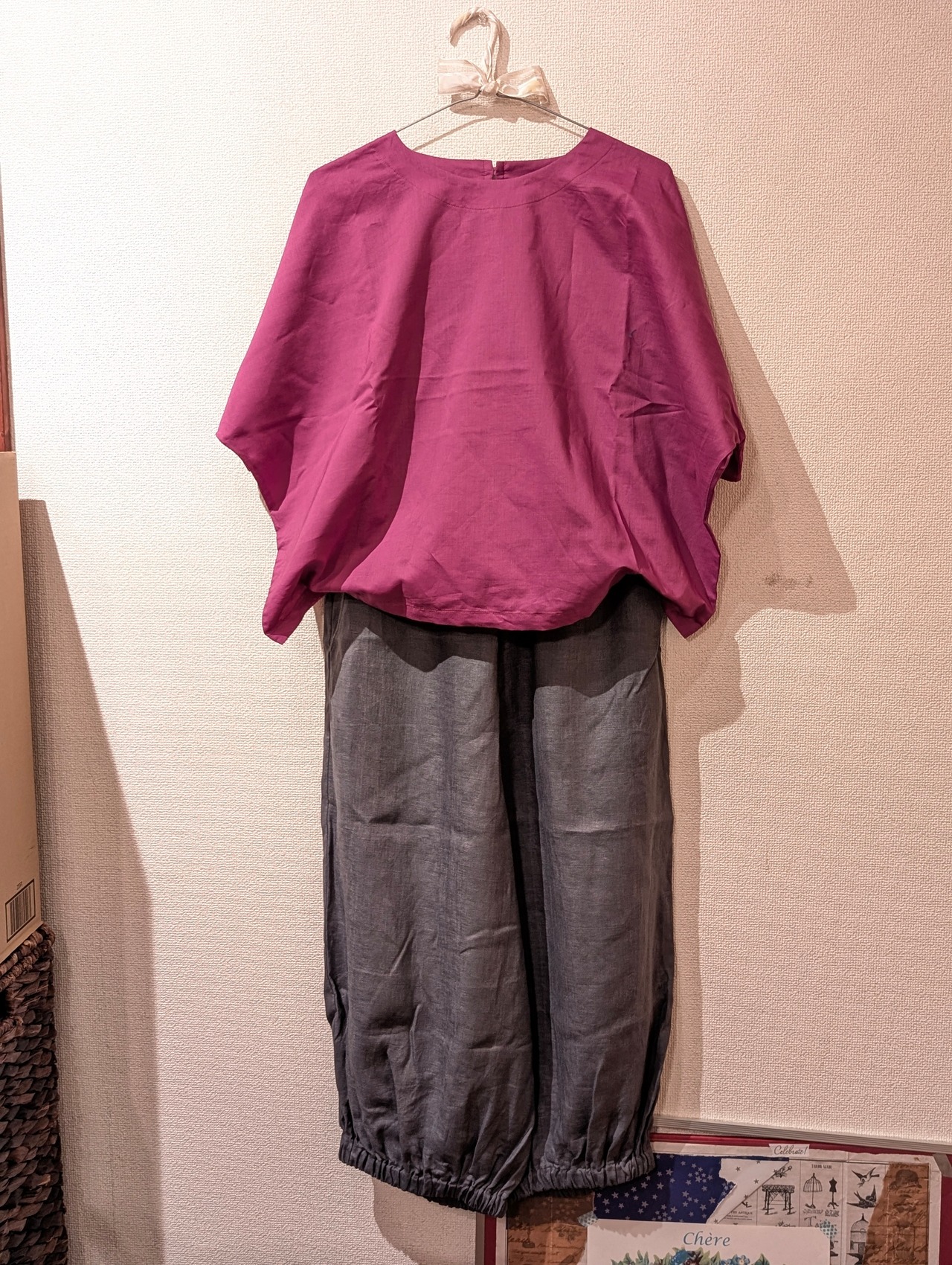 ブラウス (マゼンタ)ピンク プリーツが付いたドルマン袖当店 職人 KAORUさんの ハンドメイド。