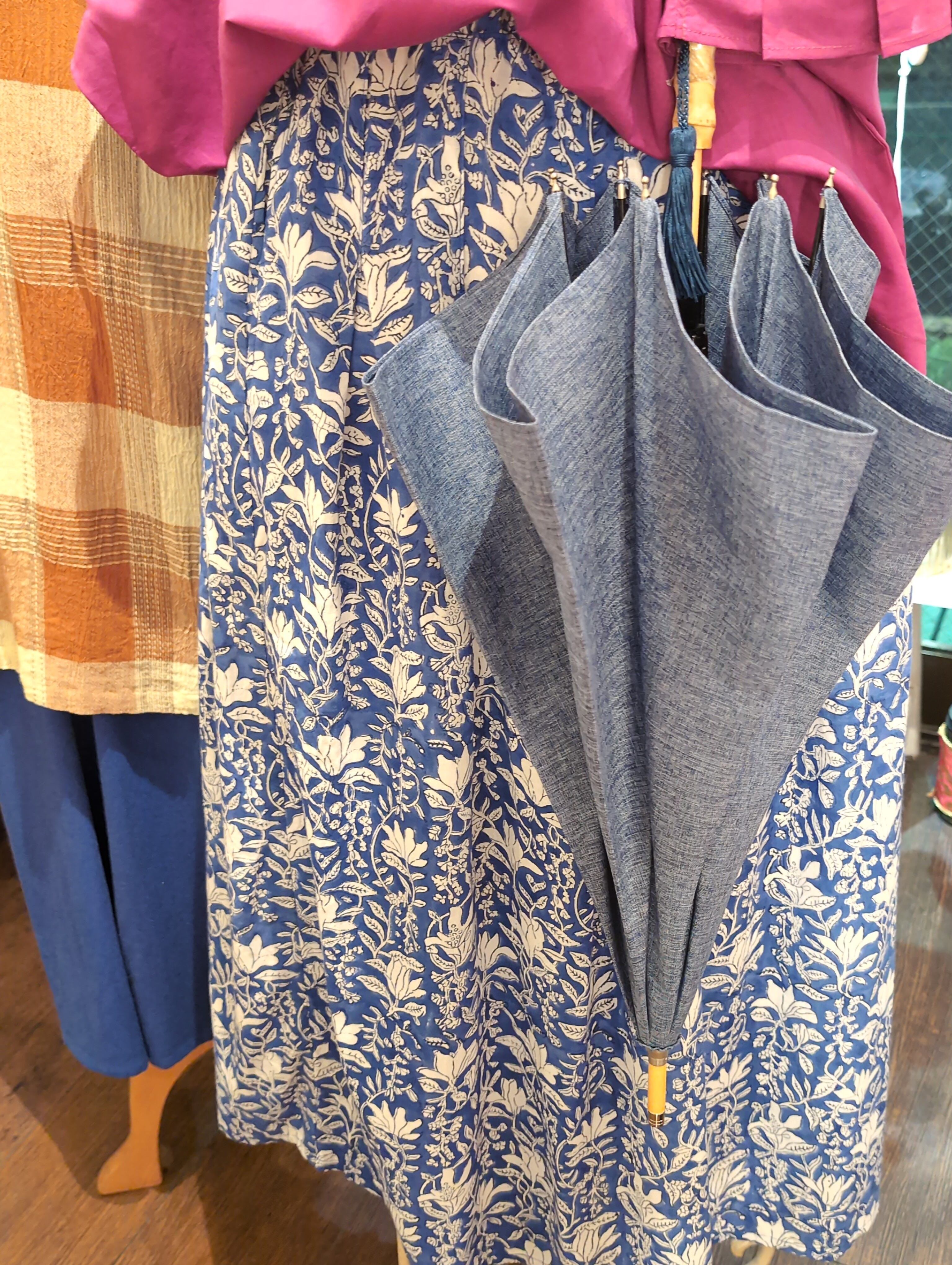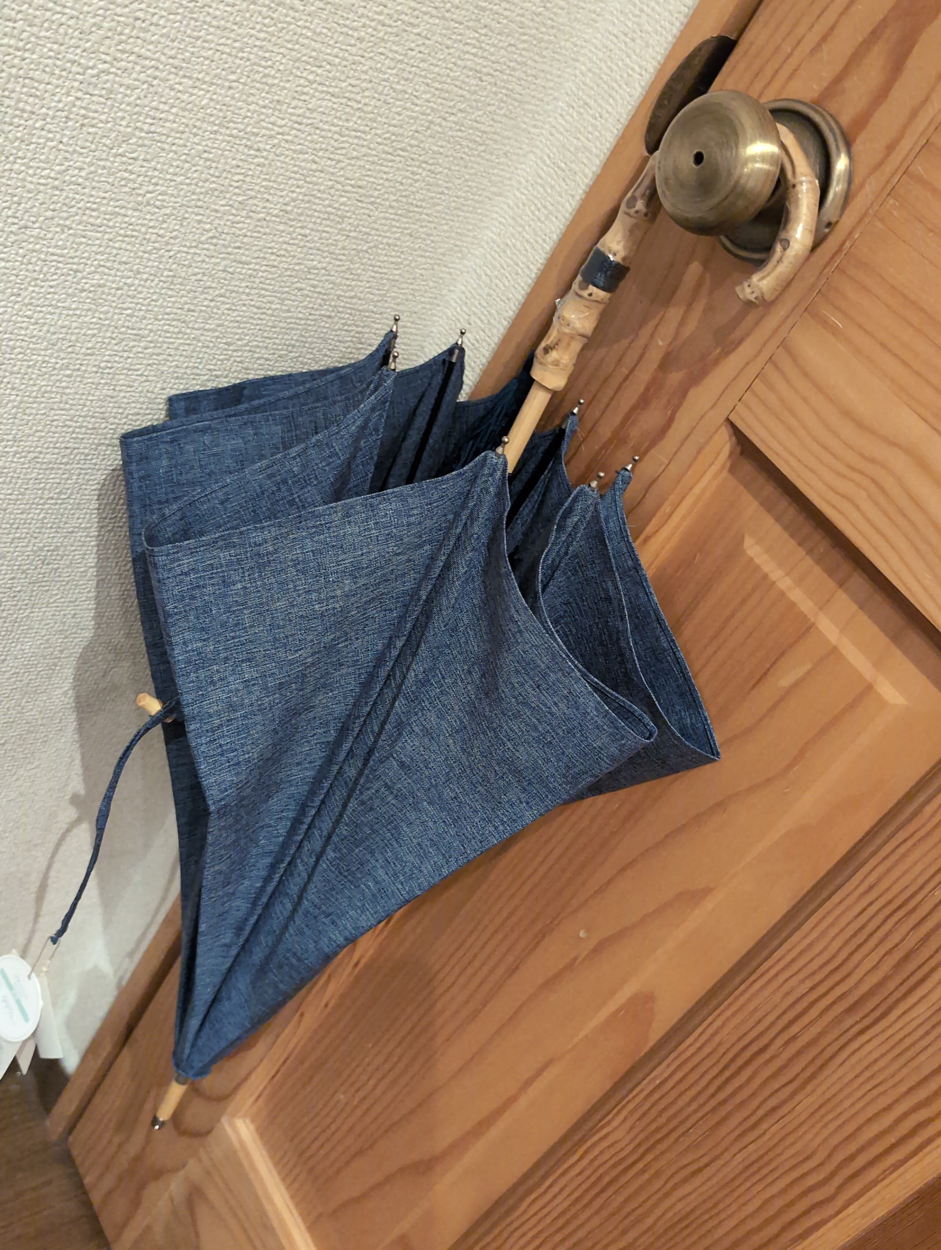傘 バンブー取っ手とタッセルの長かさ 晴雨兼用 いつでも使える おしゃれ アンブレラ ブルー