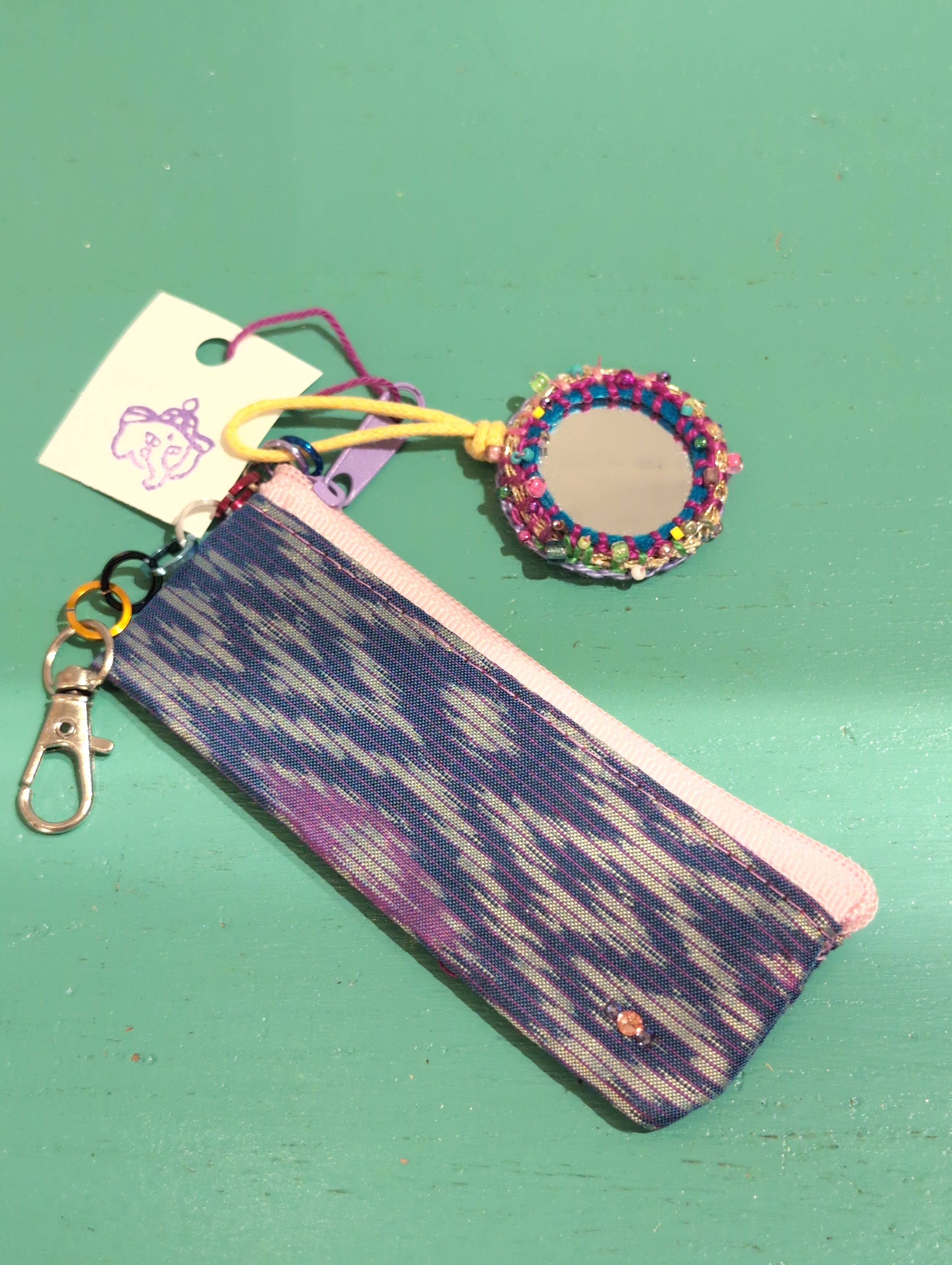 リップケース または 印鑑ケース ミラー&カニカン付き かわいい 生地使いの timo. coさん ハンドメイド 手縫い