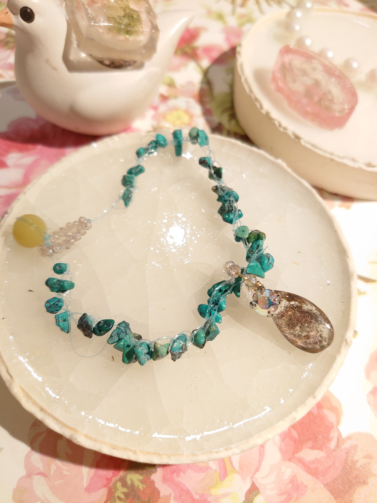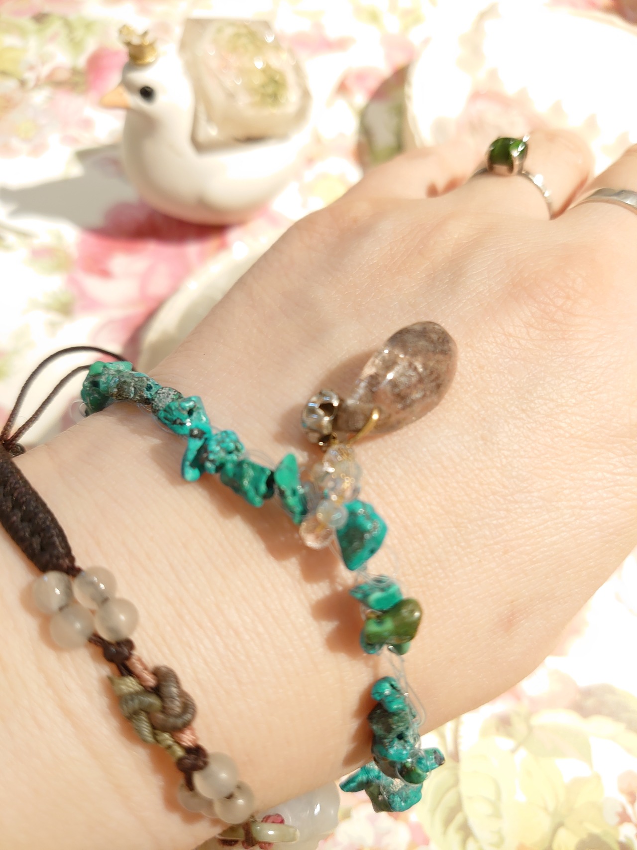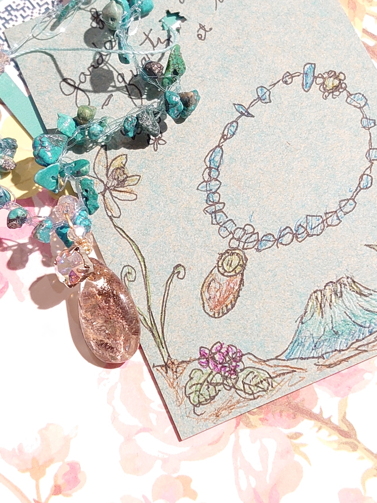 ガーデンクオーツ、ターコイズ、かぶれにくい素材