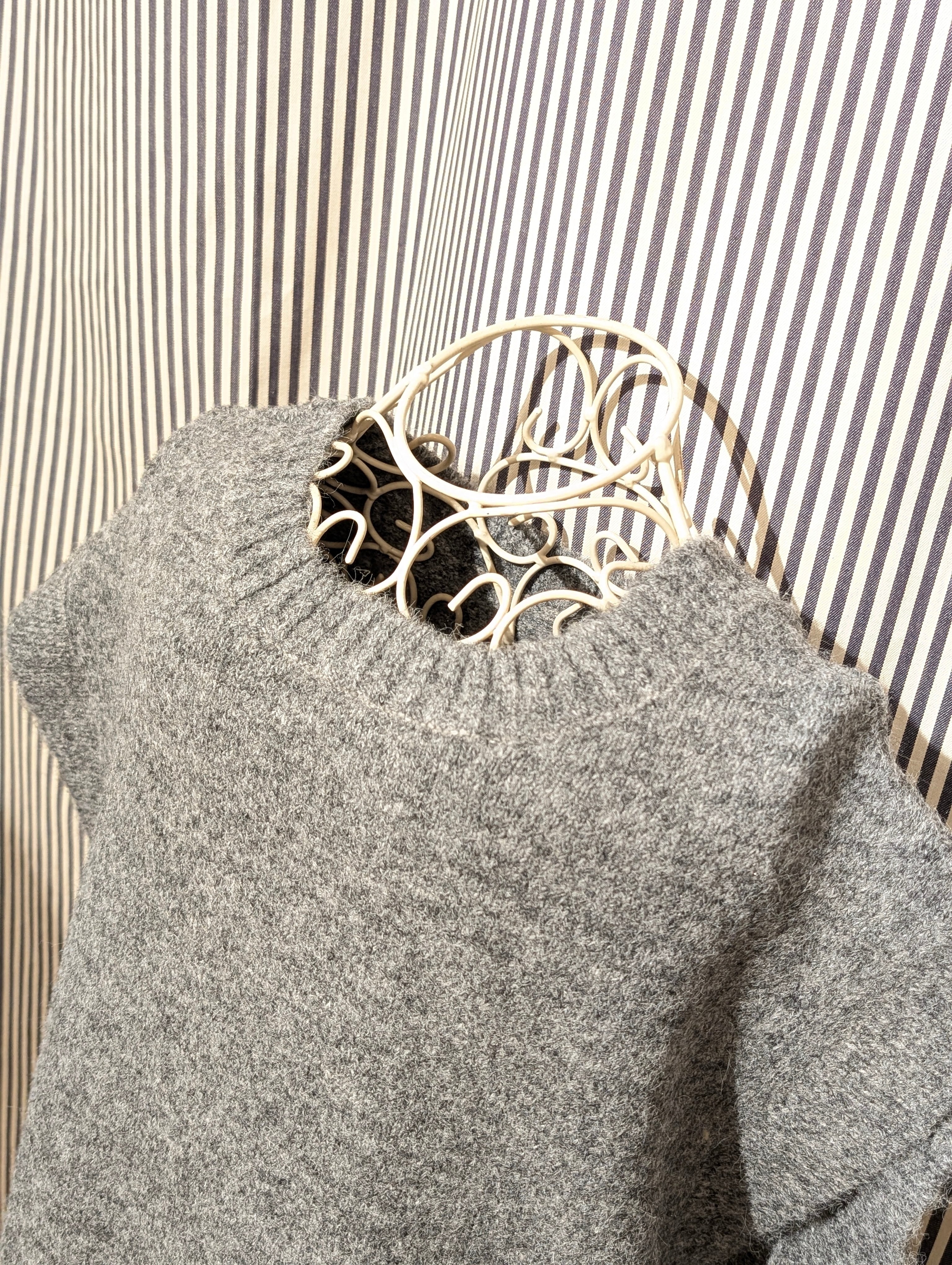**デザイン:シンプルでありながら遊び心のあるニットベスト、袖付きショートボレロとしても楽しめます。**