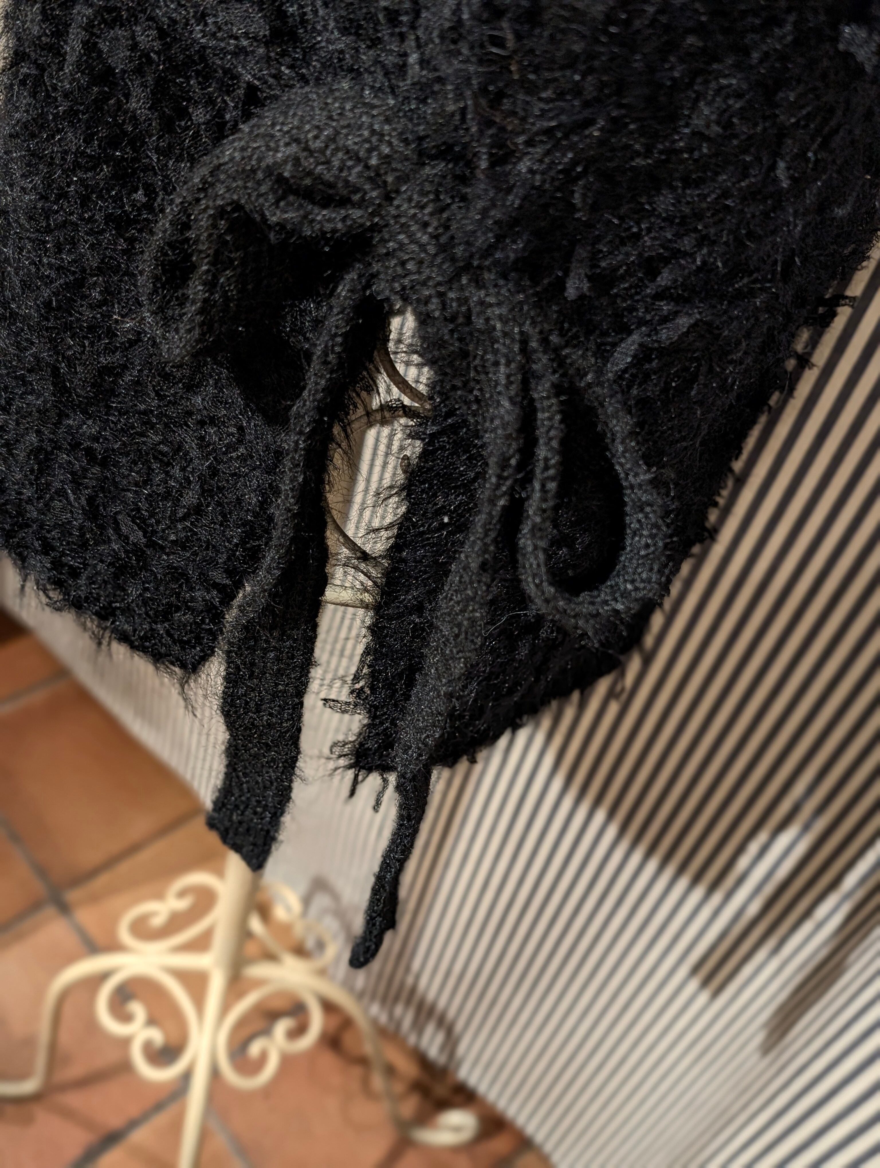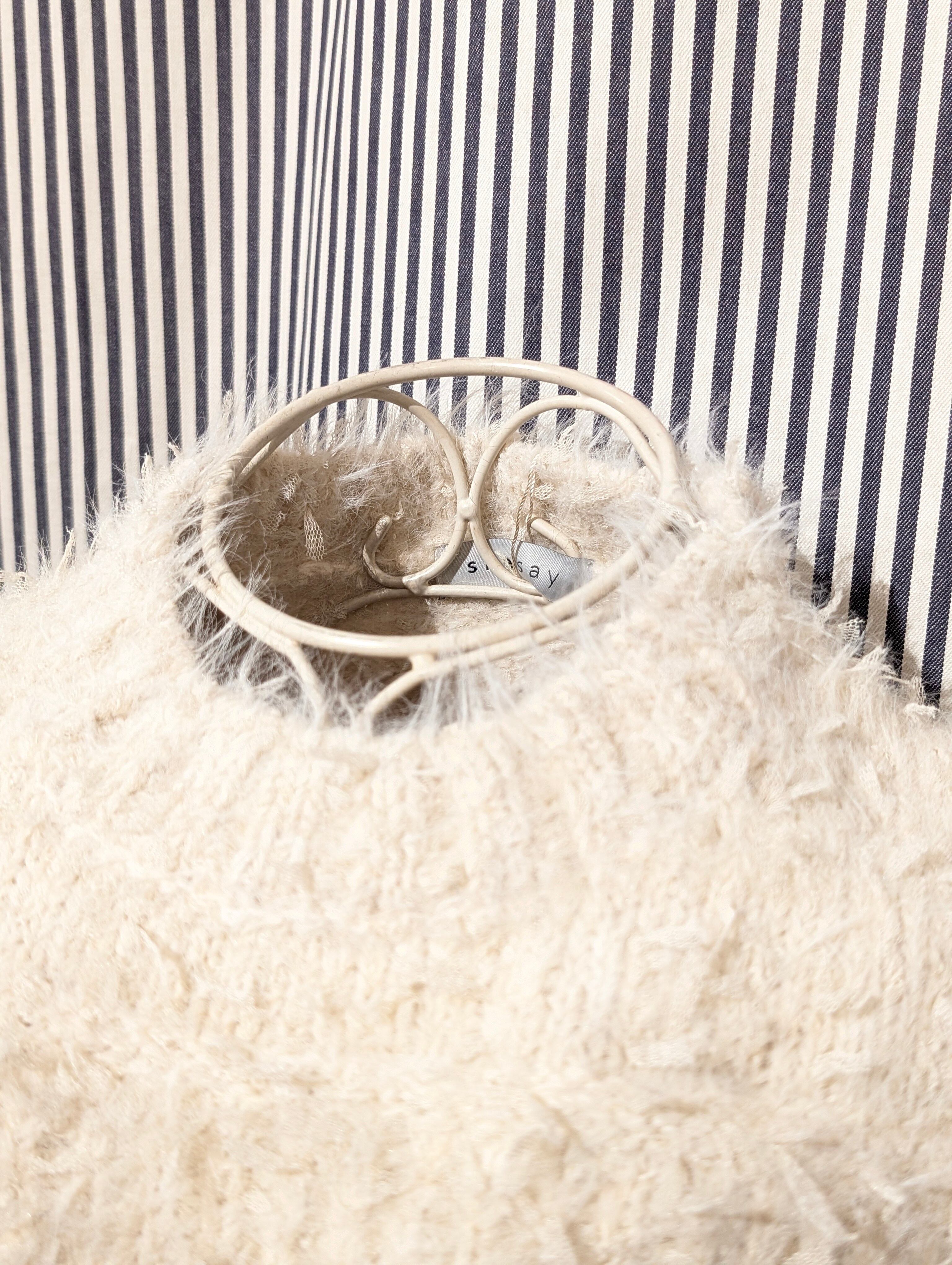 寒い季節でも暖かさを保ちながら、スタイリッシュな印象を与えることができます。リボンヤーンで編まれたもふもふの素材感が、あなたのコーディネートに華やかさを加え、おしゃれを楽しむひとときを演出します!