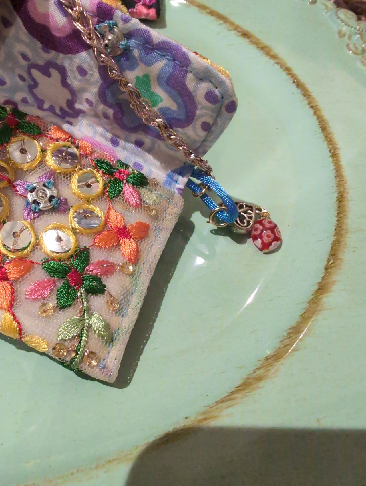 ⬛p7-2インドリボン白系オーガンジーにカラフル刺繍★本体約5.5*6.5センチ