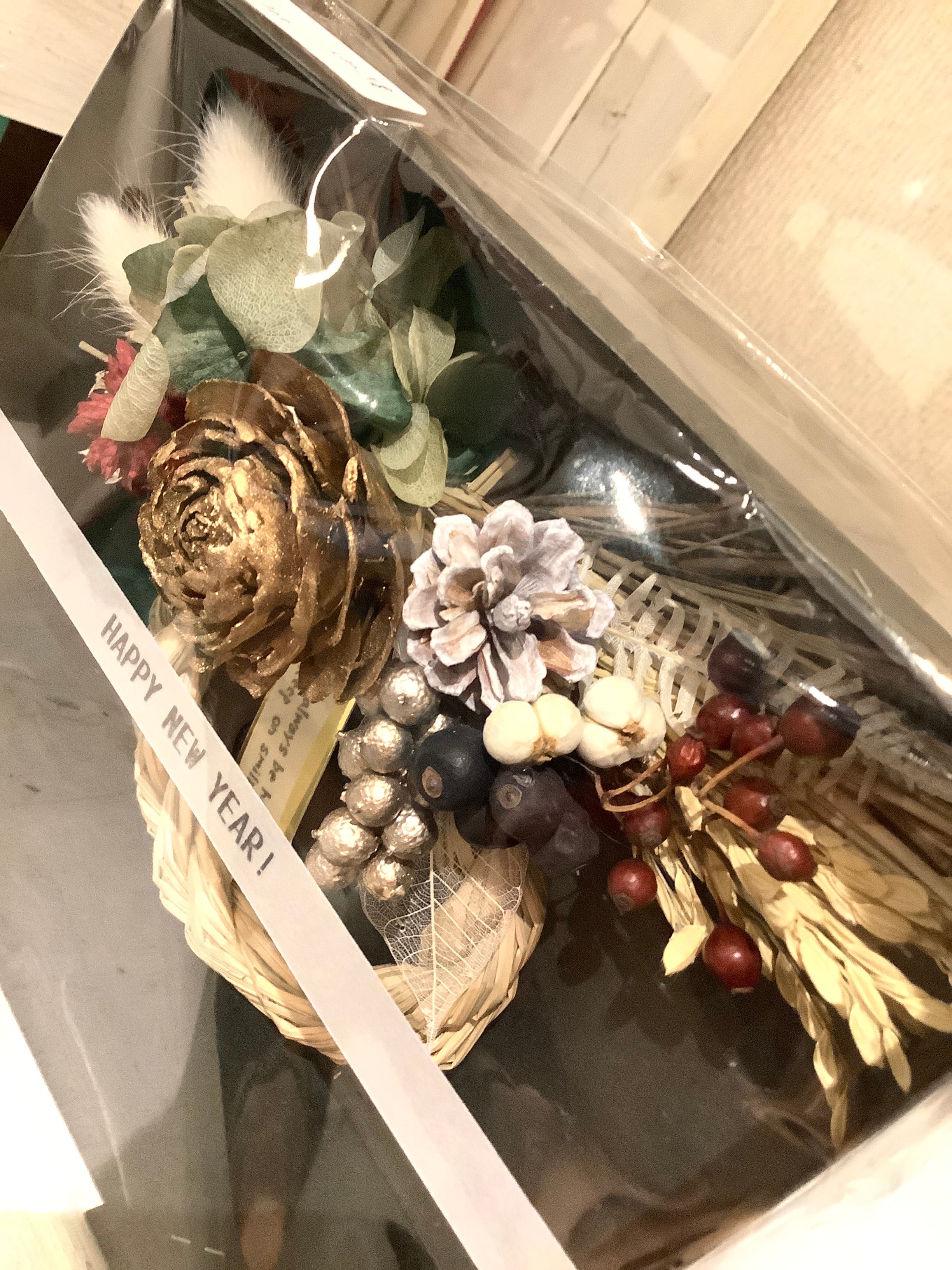 しめ縄リース ドライフラワー ゴールド/ピンク 本物のお花やハーブやスパイスが美しい miomu さんの 花 雑貨