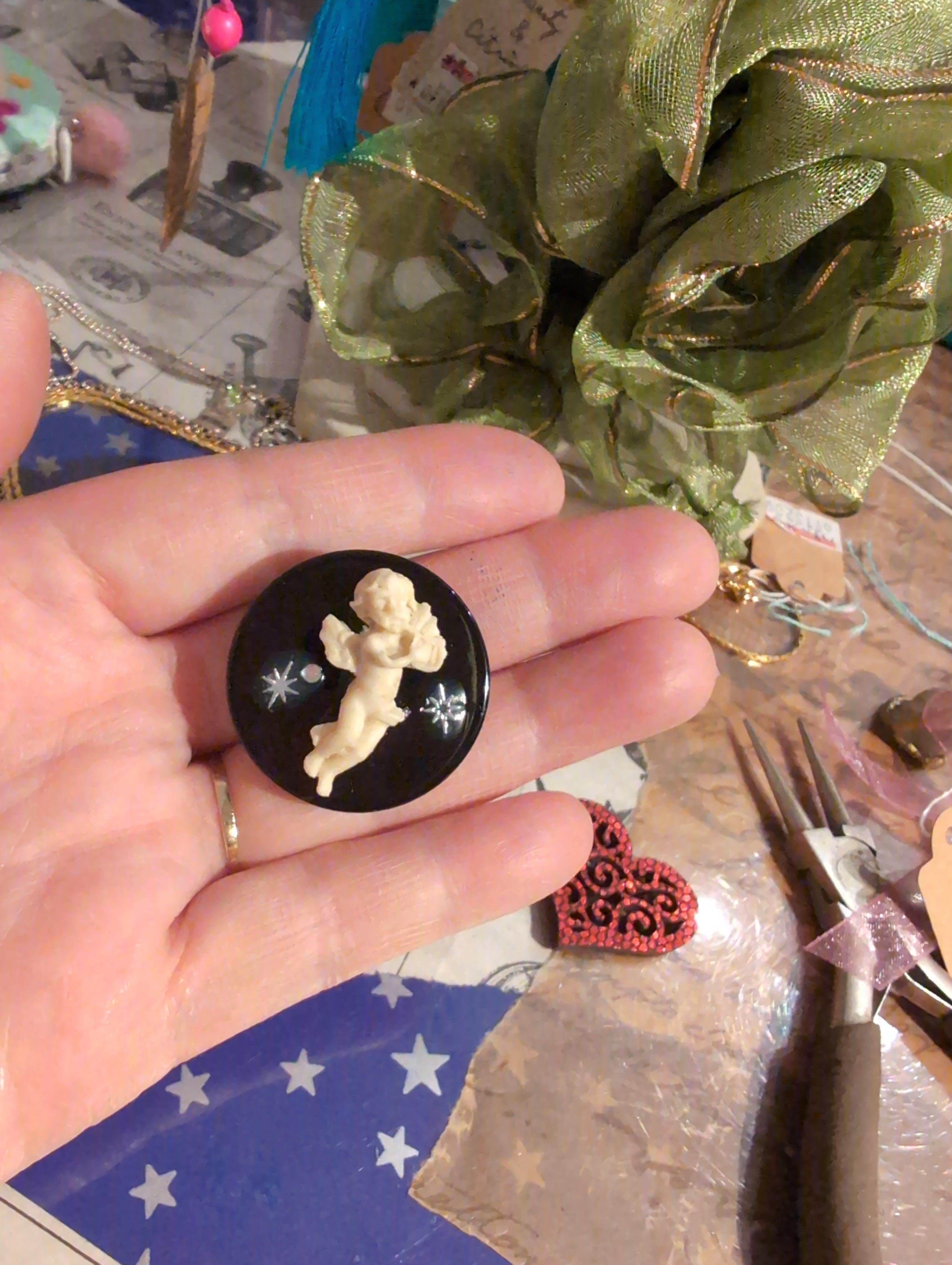 ■ブローチ ブラックオニキス プレートにエンジェルのコラージュ