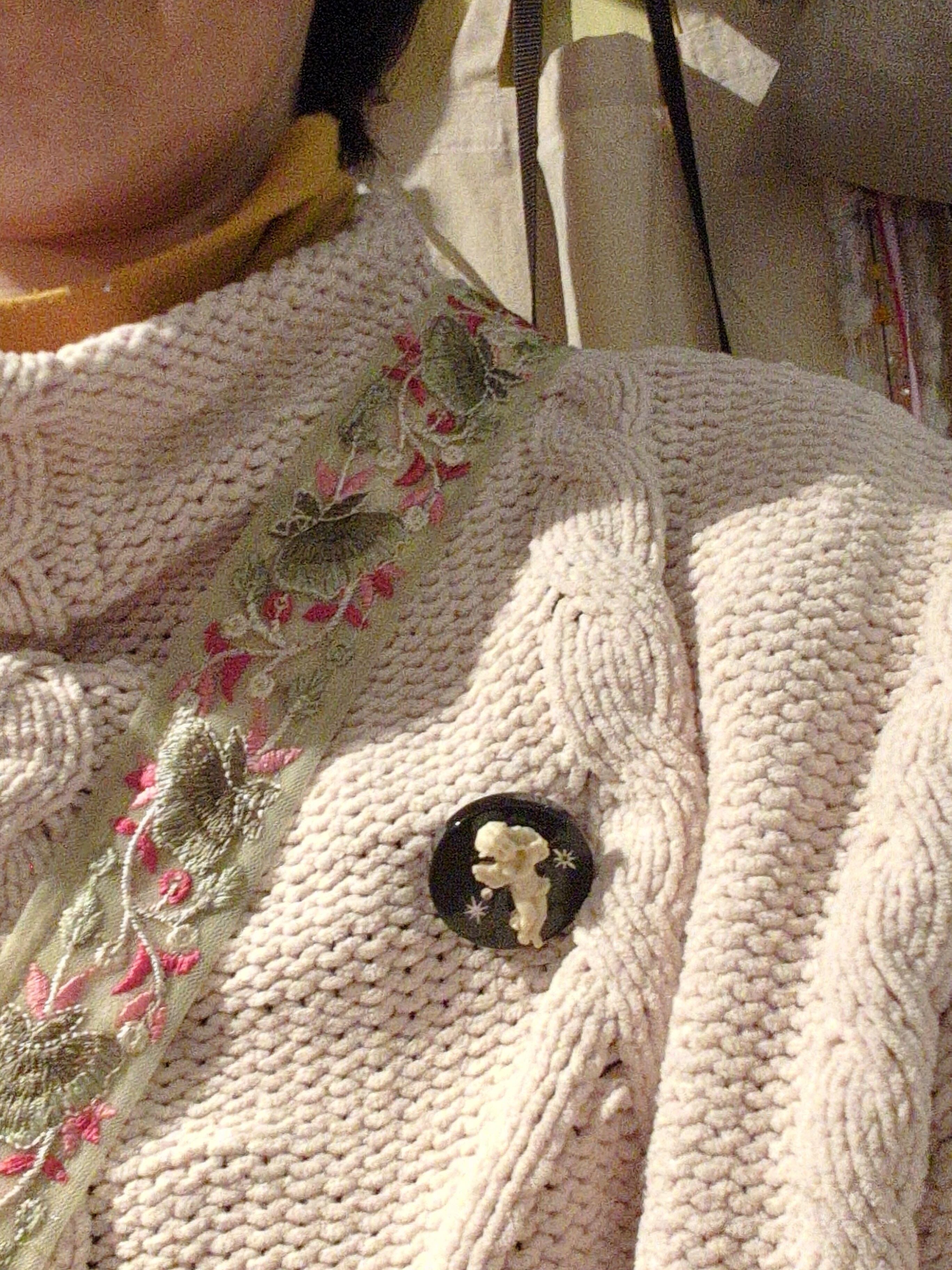 エンジェルのコラージュは、思わず目を奪う可愛らしいデザインで、身に着けることで心に安らぎを与えてくれるでしょう。カジュアルな服装からフォーマルなシーンまで幅広く活躍するこのブローチは、毎日のお出かけにぜひ取り入れてみてください。