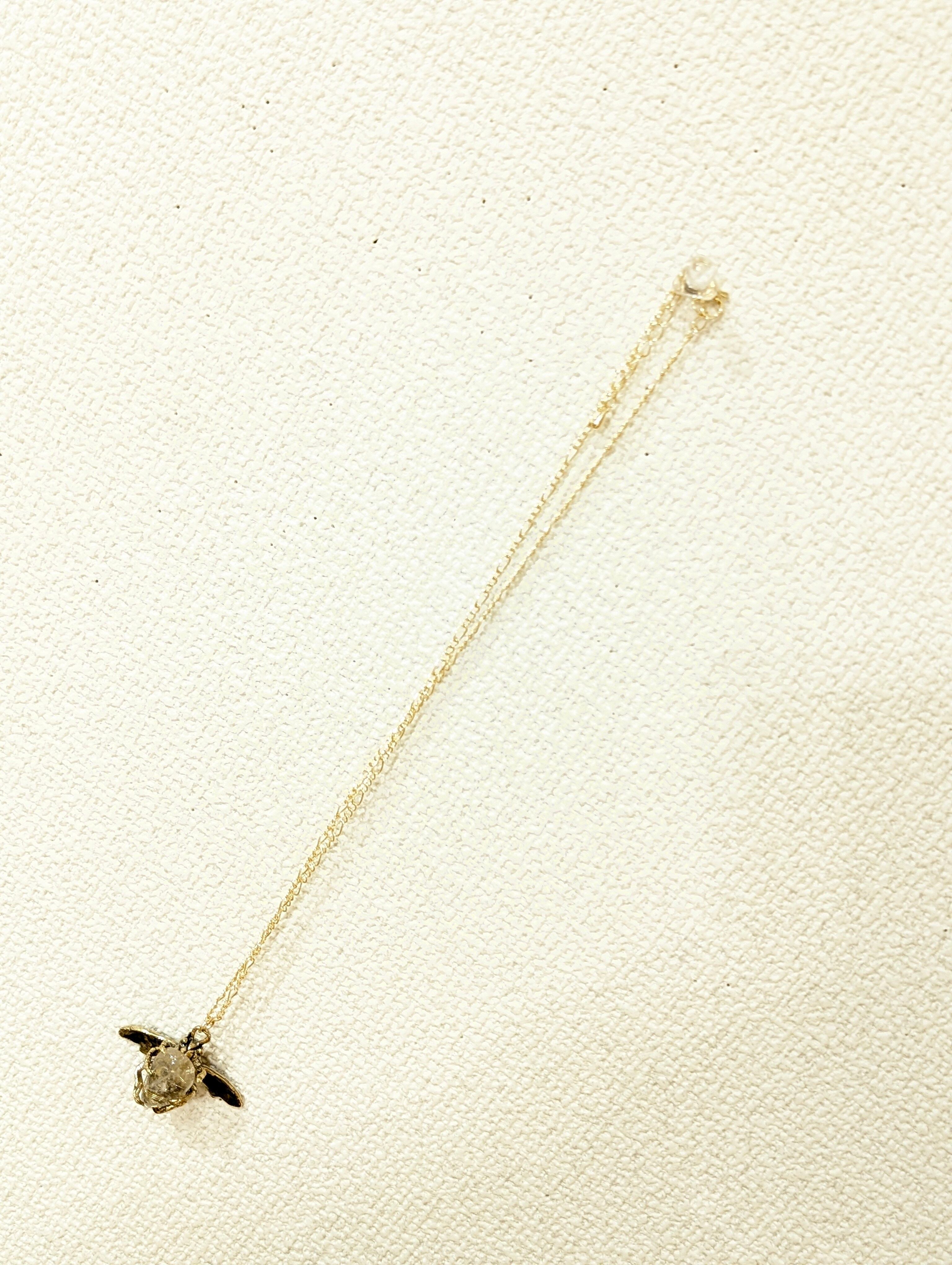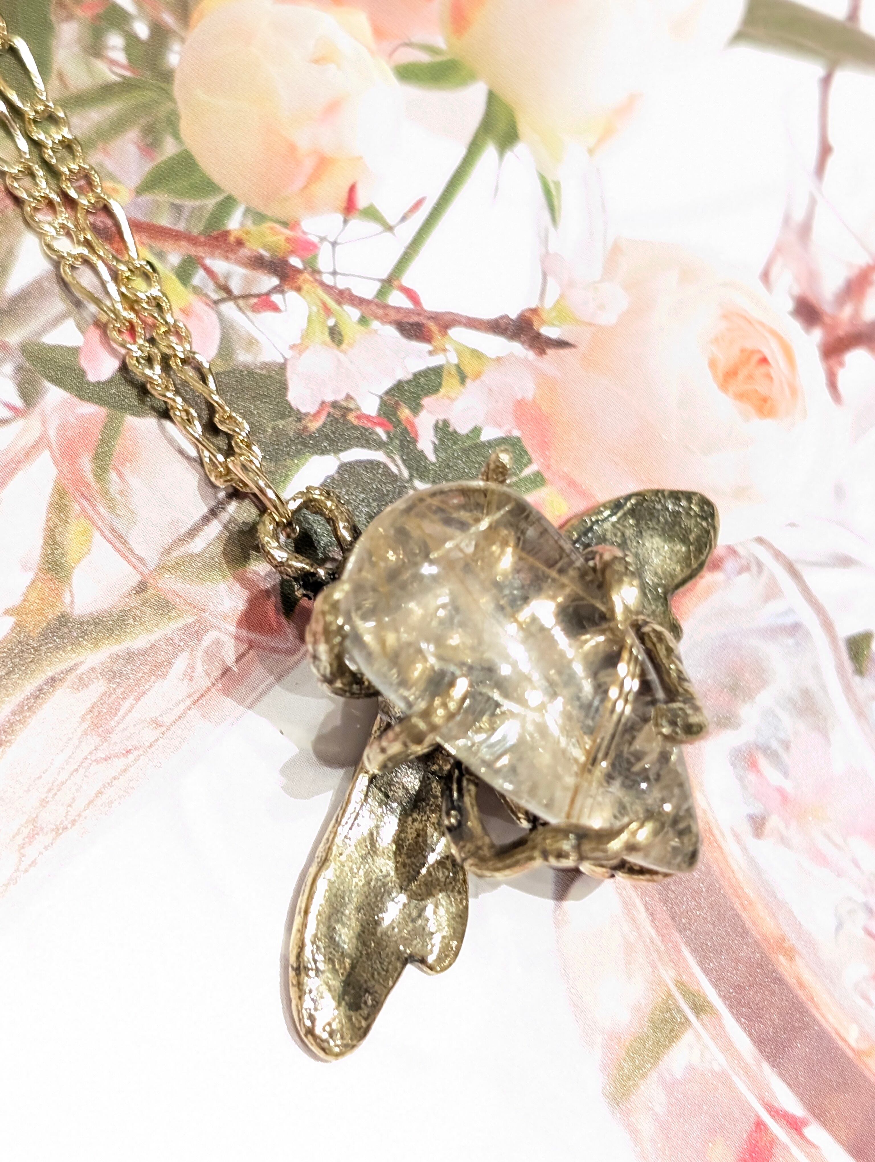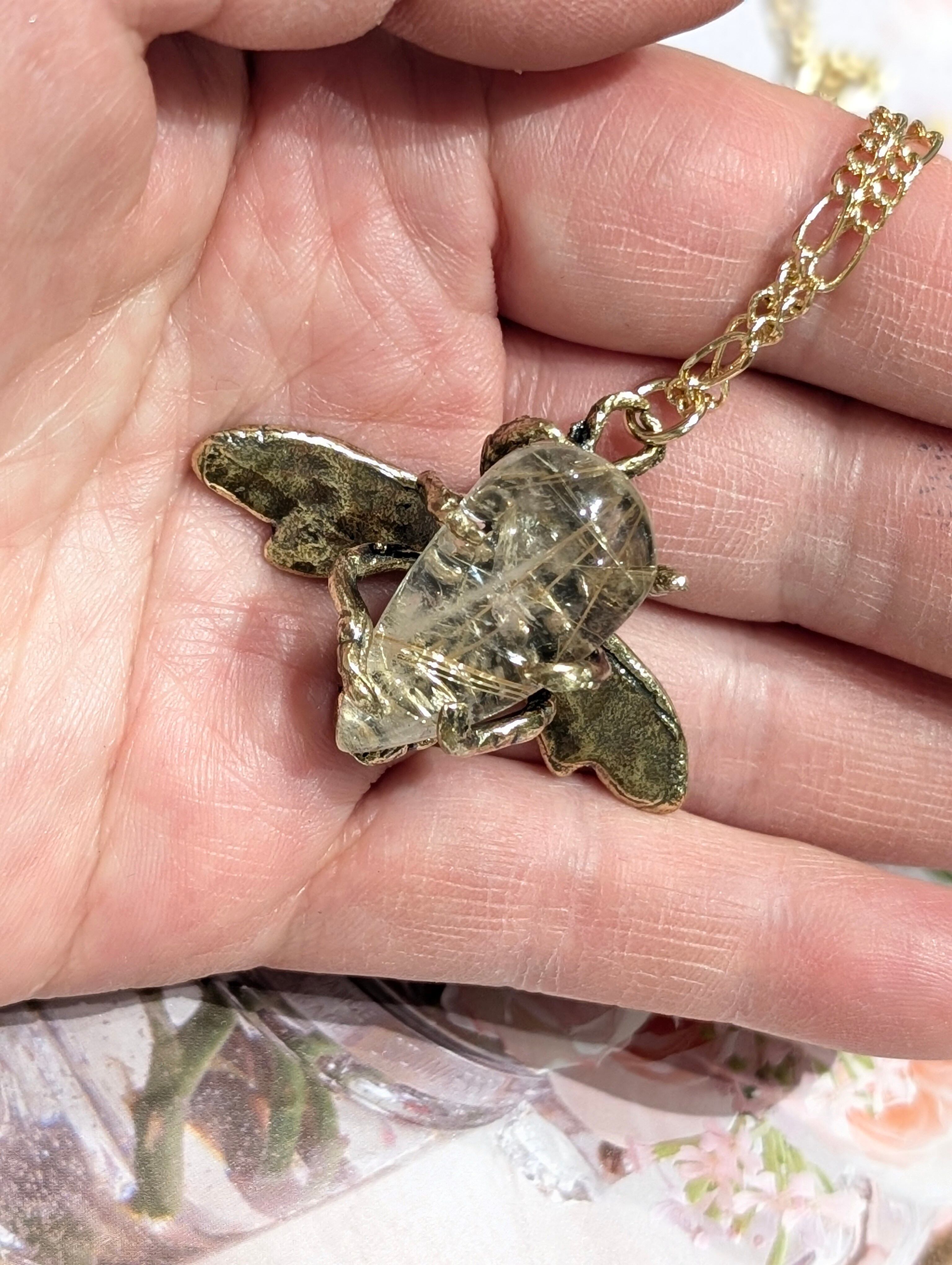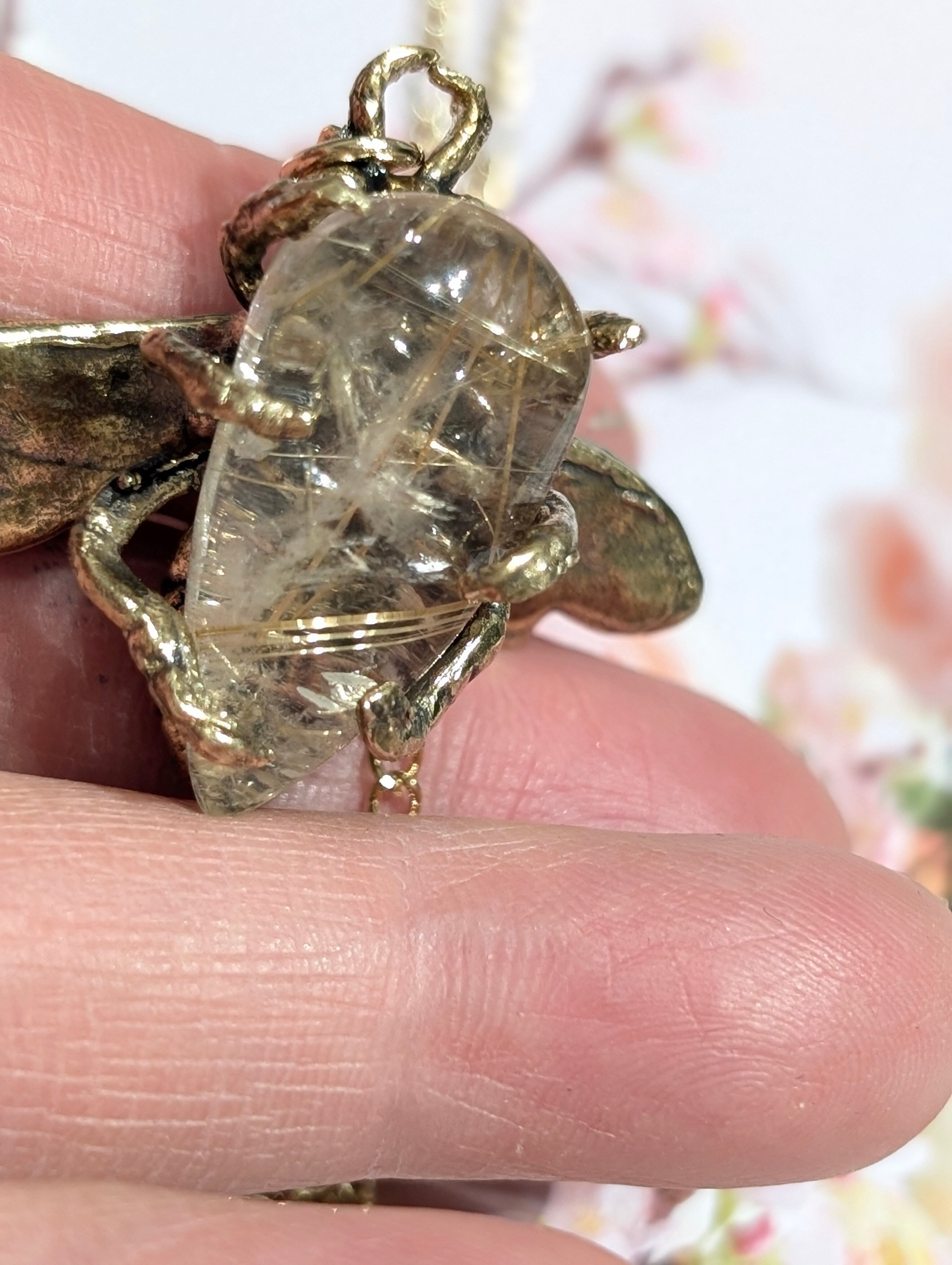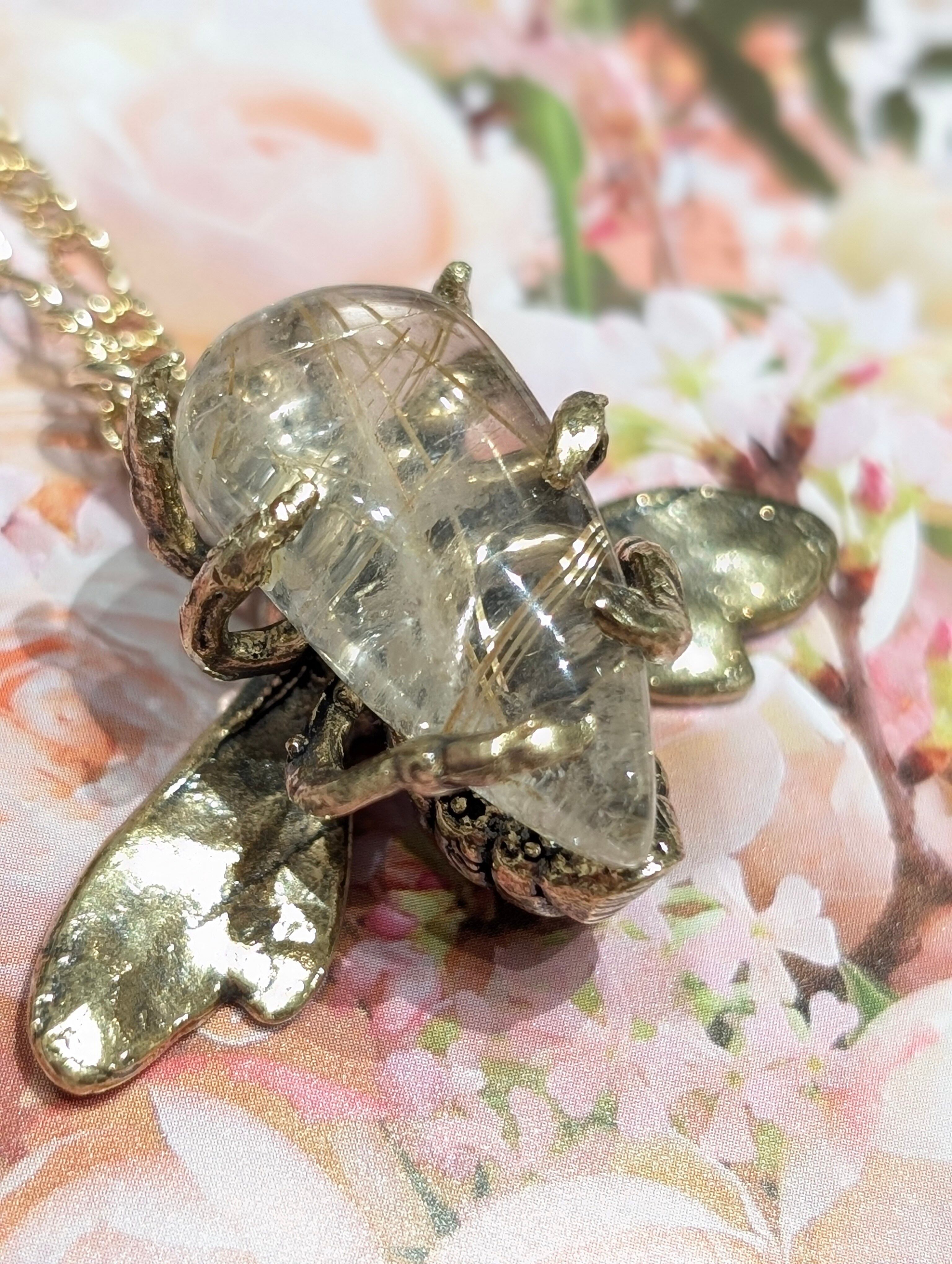 自然の美しさを感じさせるルチルクオーツを使用したこのペンダントは、愛らしい蜂のモチーフが魅力的なデザインです。