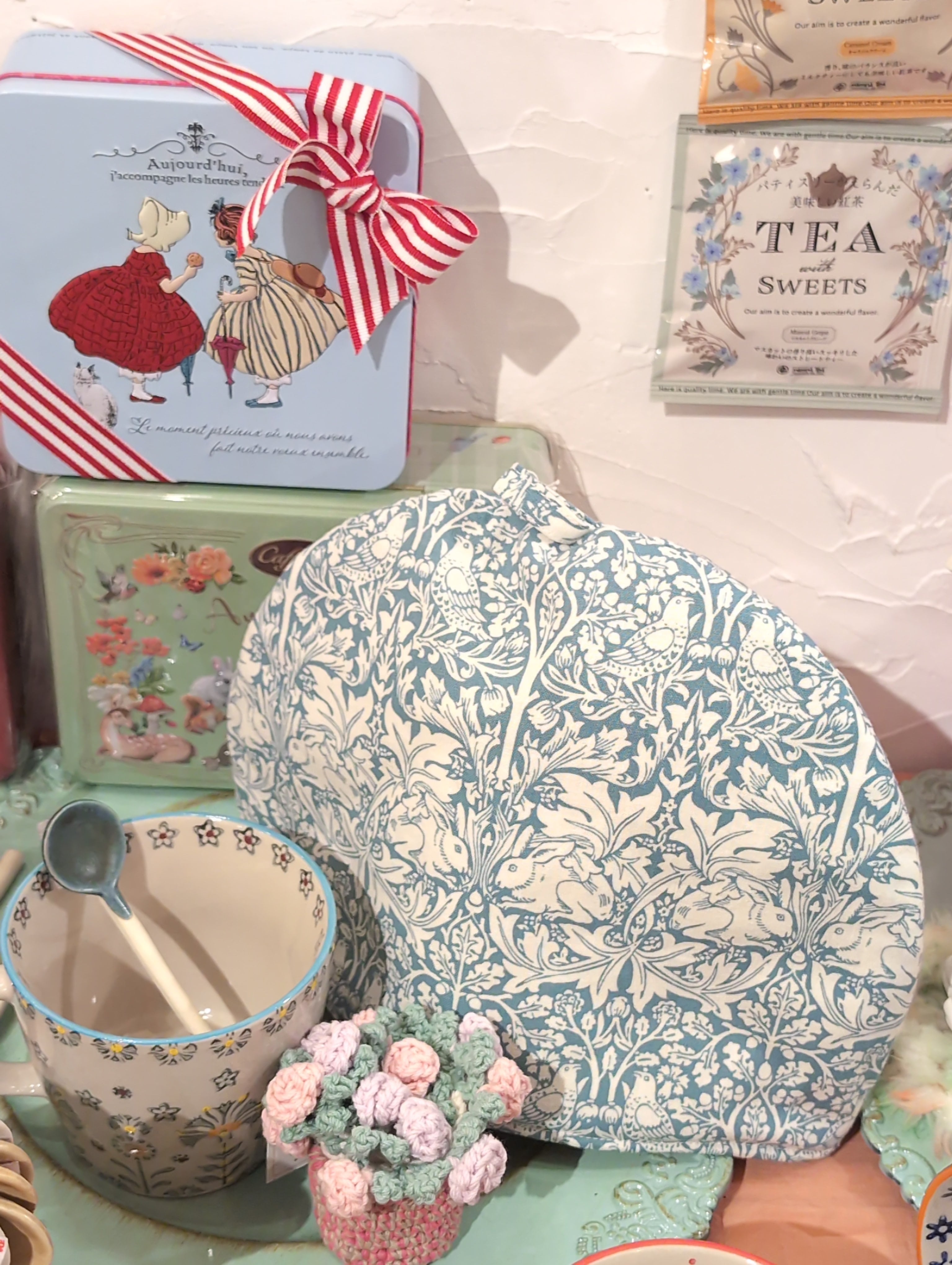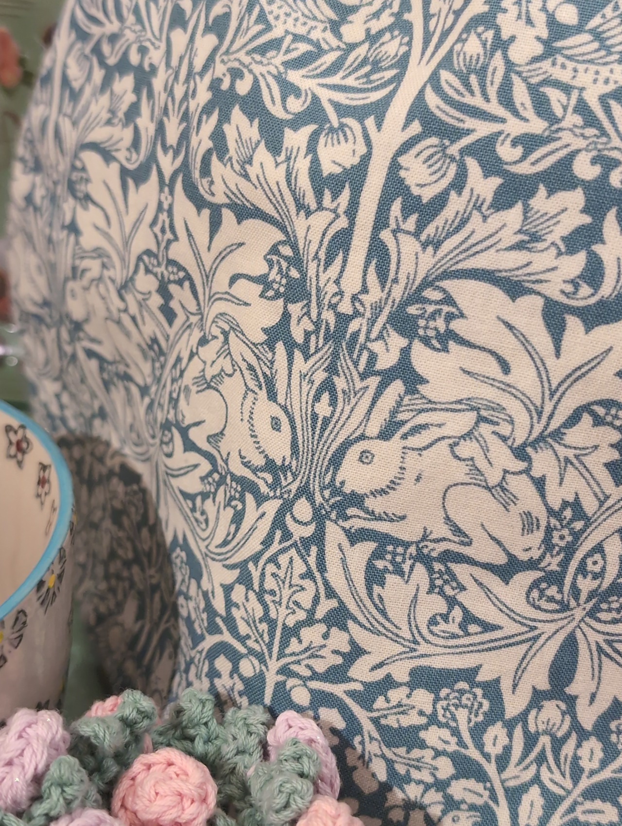 ティーコジー ハンドメイド オリジナル ポットカバー カップアンドソーサー柄 ❴うさぎ兄弟❵ ウィリアム•モリス KAORUさん 作品