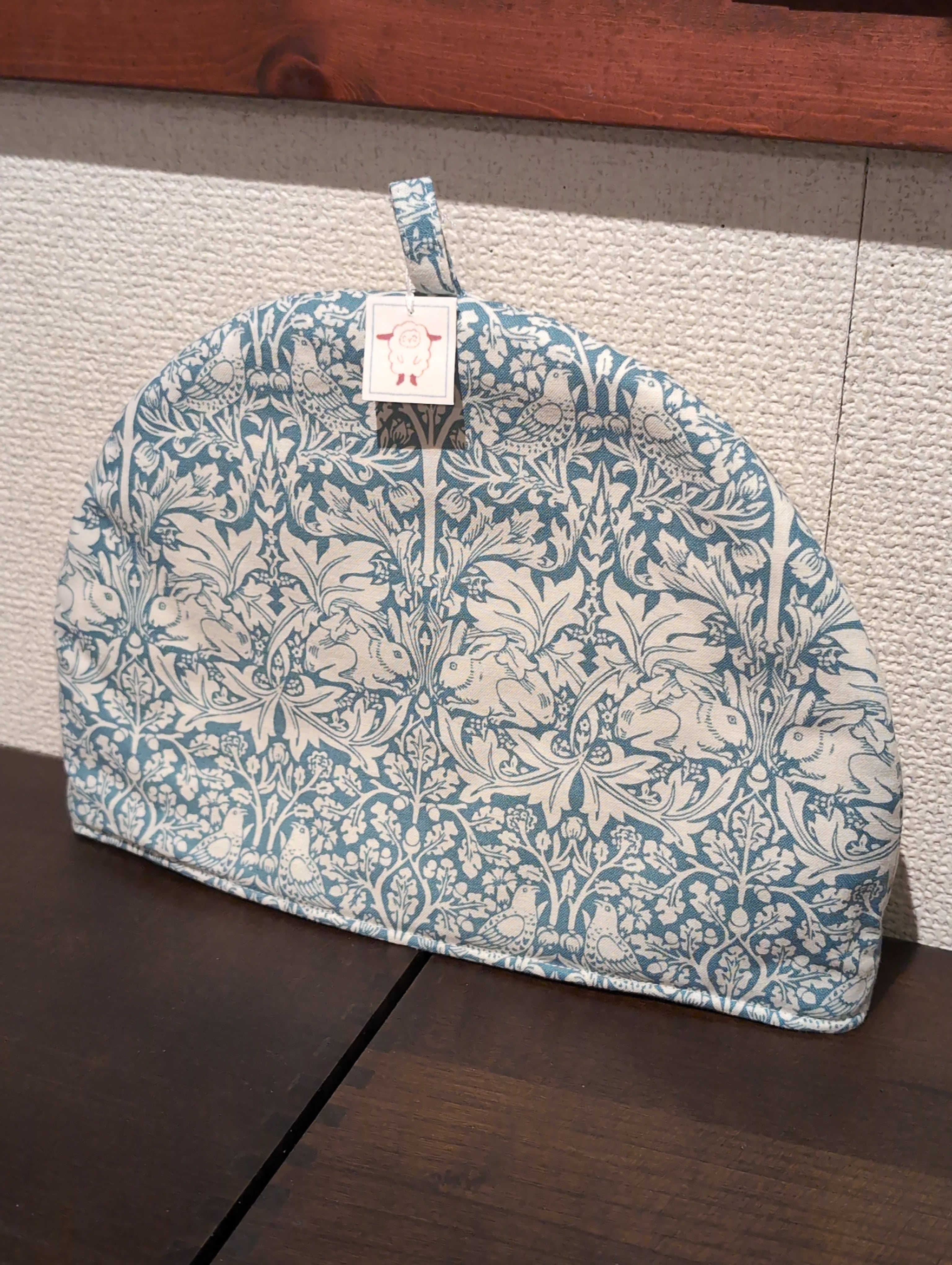 こちらのティーコジーは、ウィリアムモリスのうさぎ兄弟の柄です。