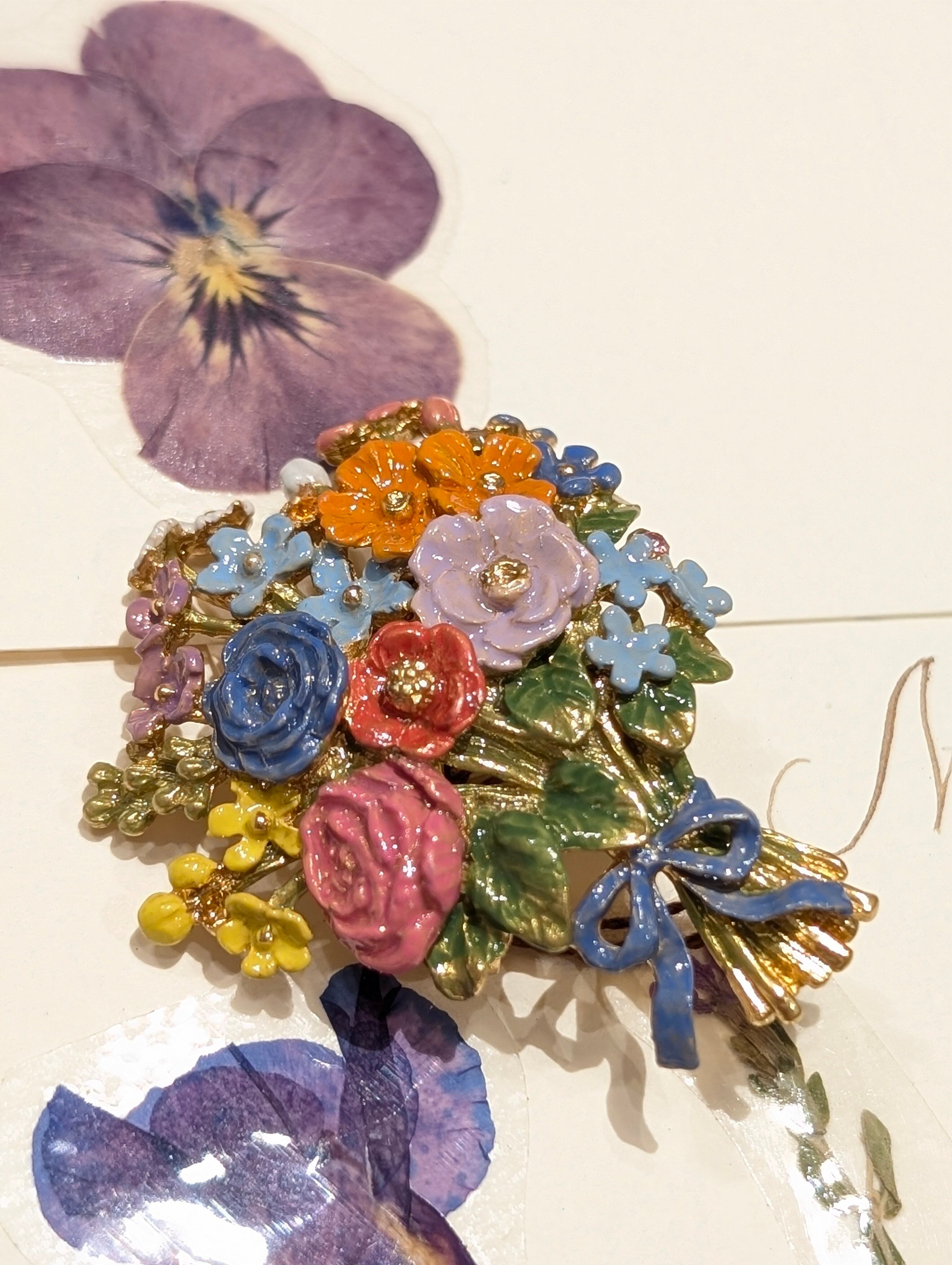 このブローチは、可愛らしいブーケデザインが特徴で、お祝いの場やお見送りのシーンにもぴったりです。さまざまな装いにアクセントを加えることで、あなたの個性を引き立てます!!