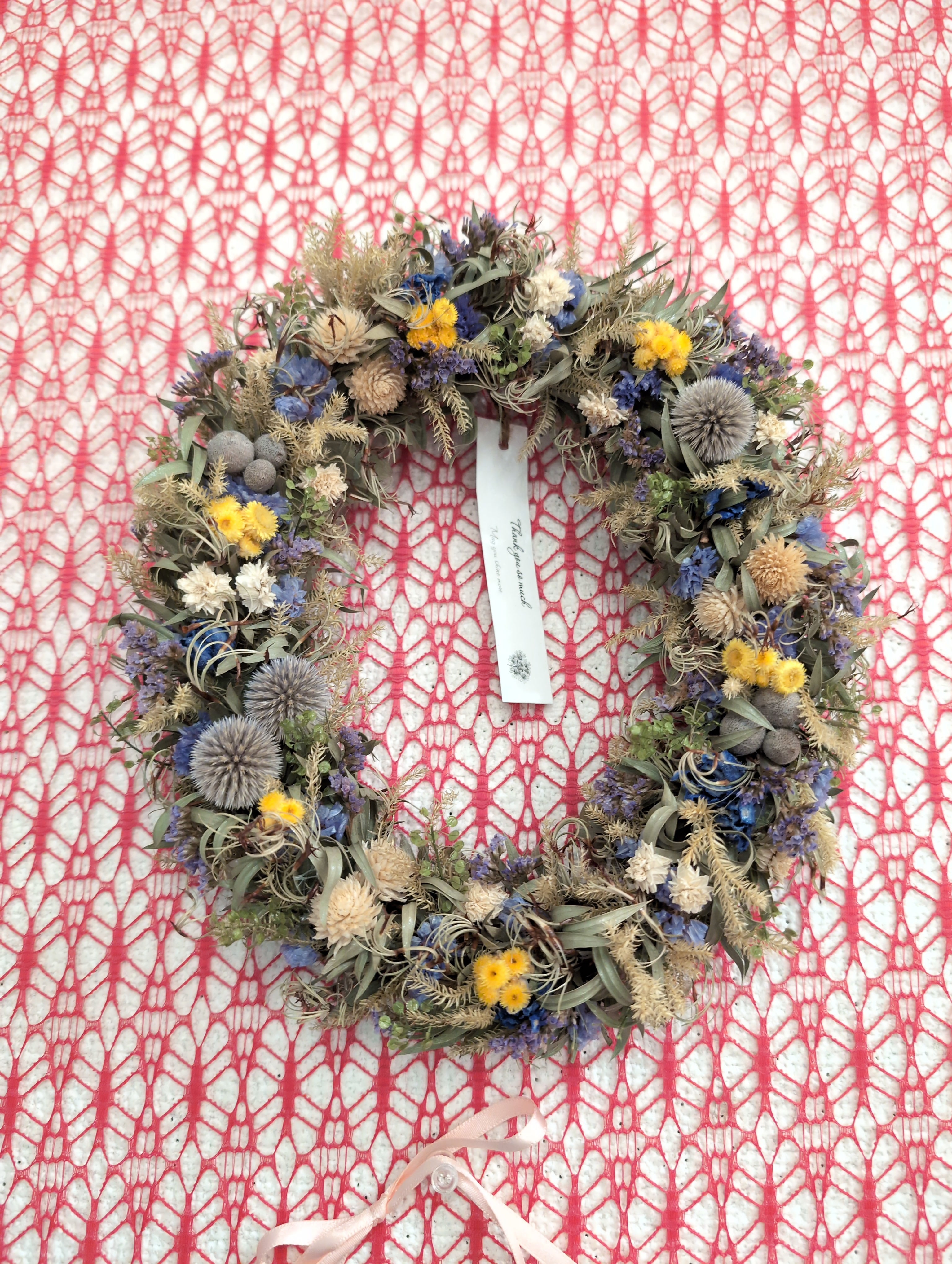 ♥セール♥リース ドライフラワー ♥オーバル♥ ♥青とピンクと白と緑と黄色の爽やかな印象♥本物のお花が美しい miomu さんの 花 雑貨