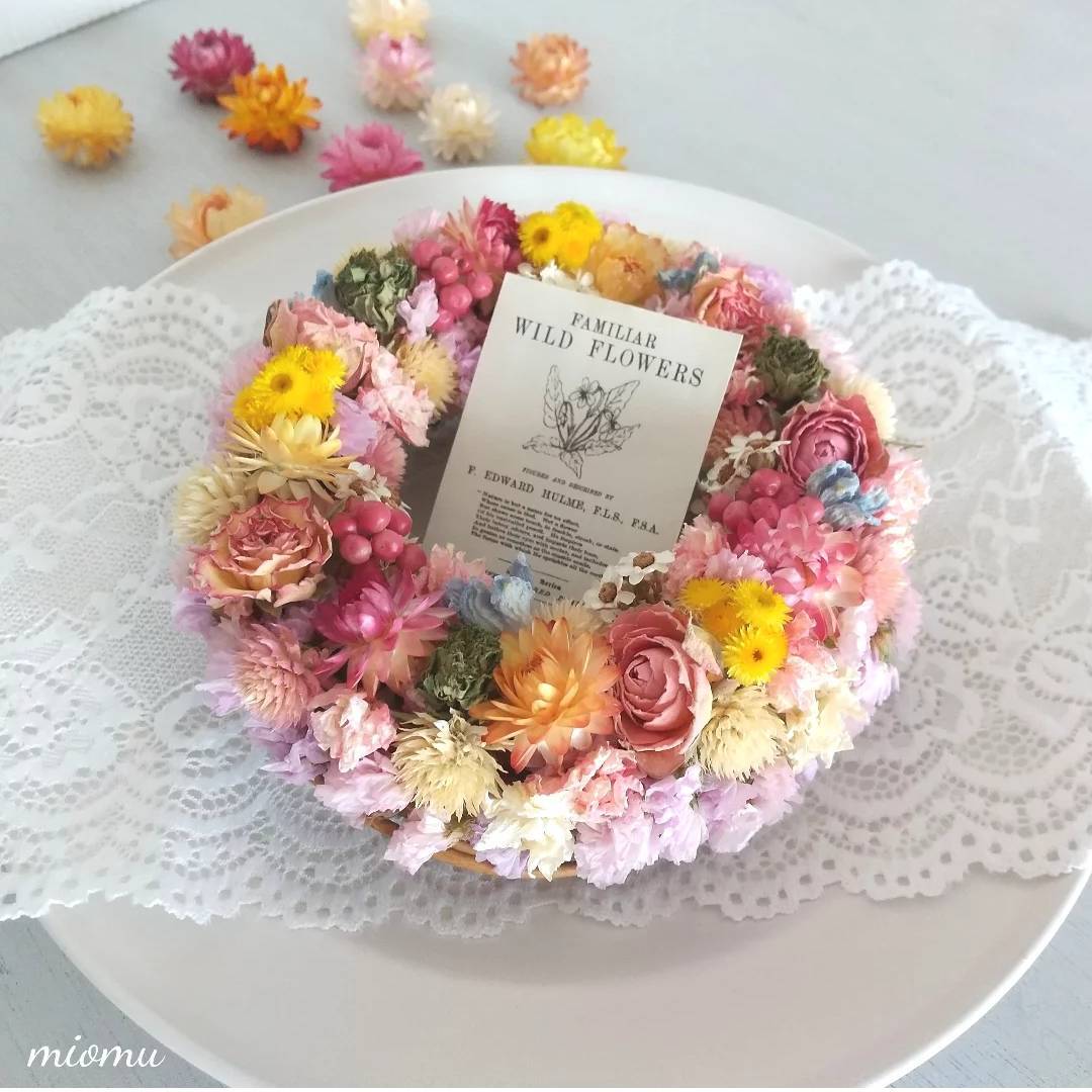 ☆華やかな色合いが魅力のリース ドライフラワー ♥花ツメツメ♥