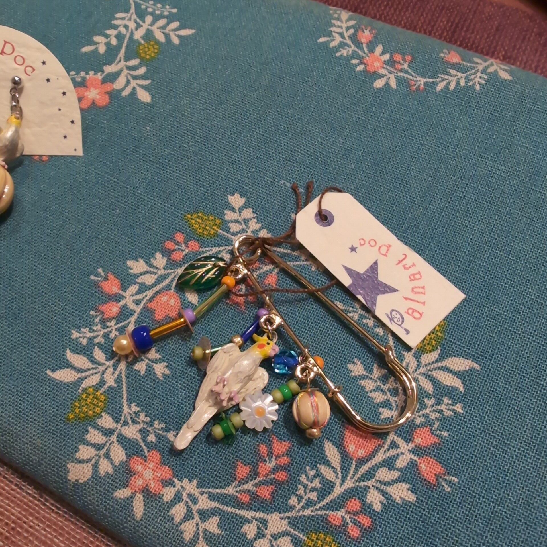 ### ブローチ オカメのさえずり パルナートポック 日本製 ハンドメイド 大好きなおもちゃで遊ぶ オカメインコ さん