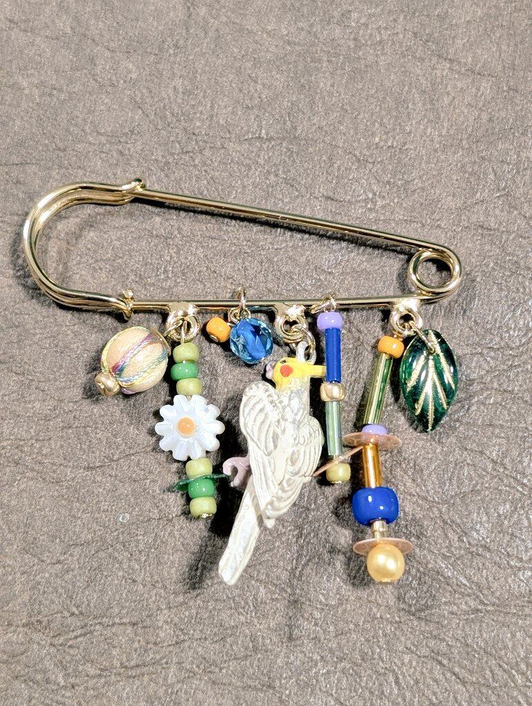 ブローチ オカメのさえずり パルナートポック 日本製 ハンドメイド 大好きなおもちゃで遊ぶ オカメインコ さん 【オカメのさえずり】