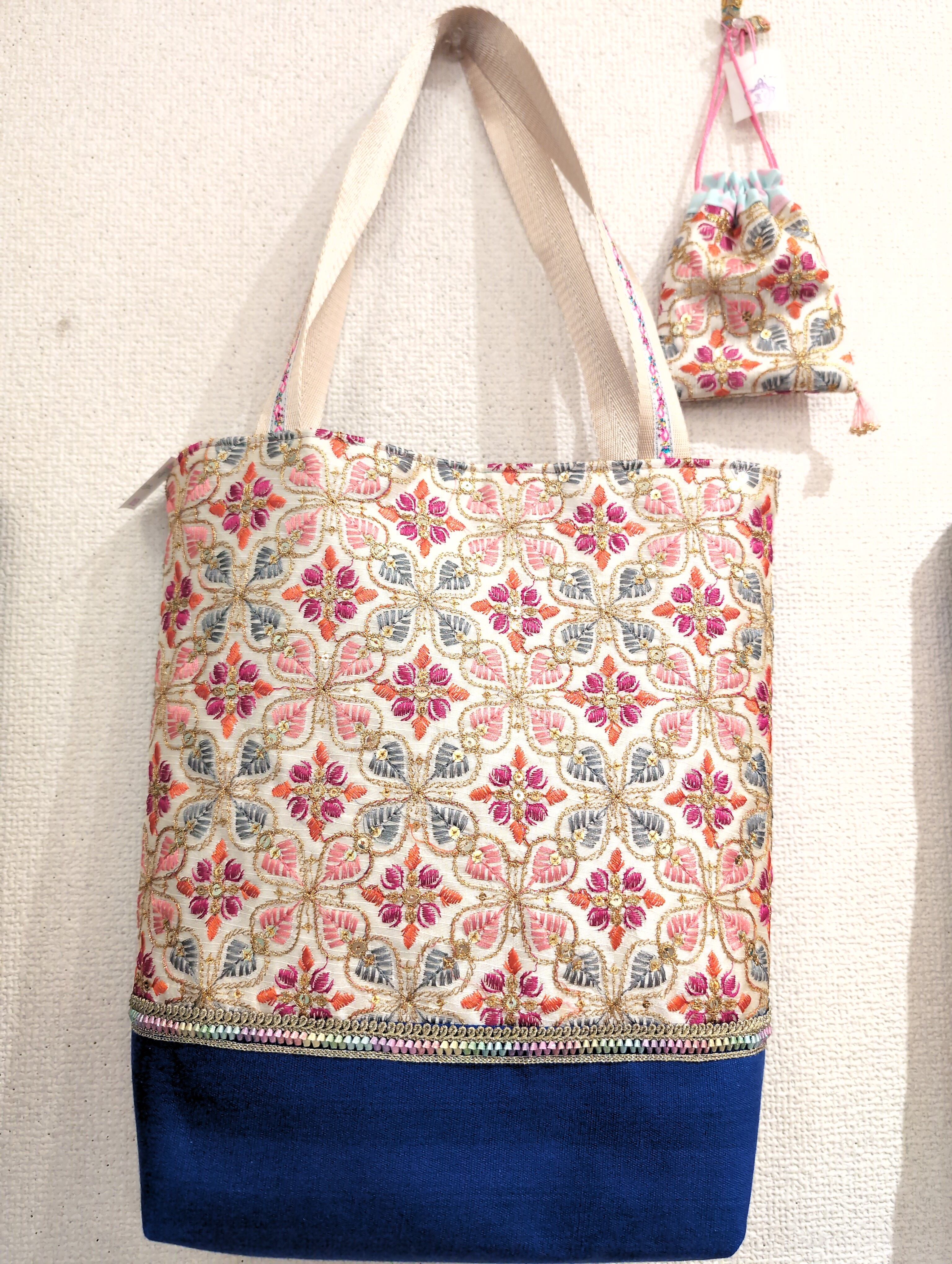 トートバッグ ゴージャス素材 カラフル アジアの生地 を コラージュ ♡ ハンドメイド かわいい 刺繍 オリジナリティー爆発!timo.co 作品 ハンドメイド i一点もの
