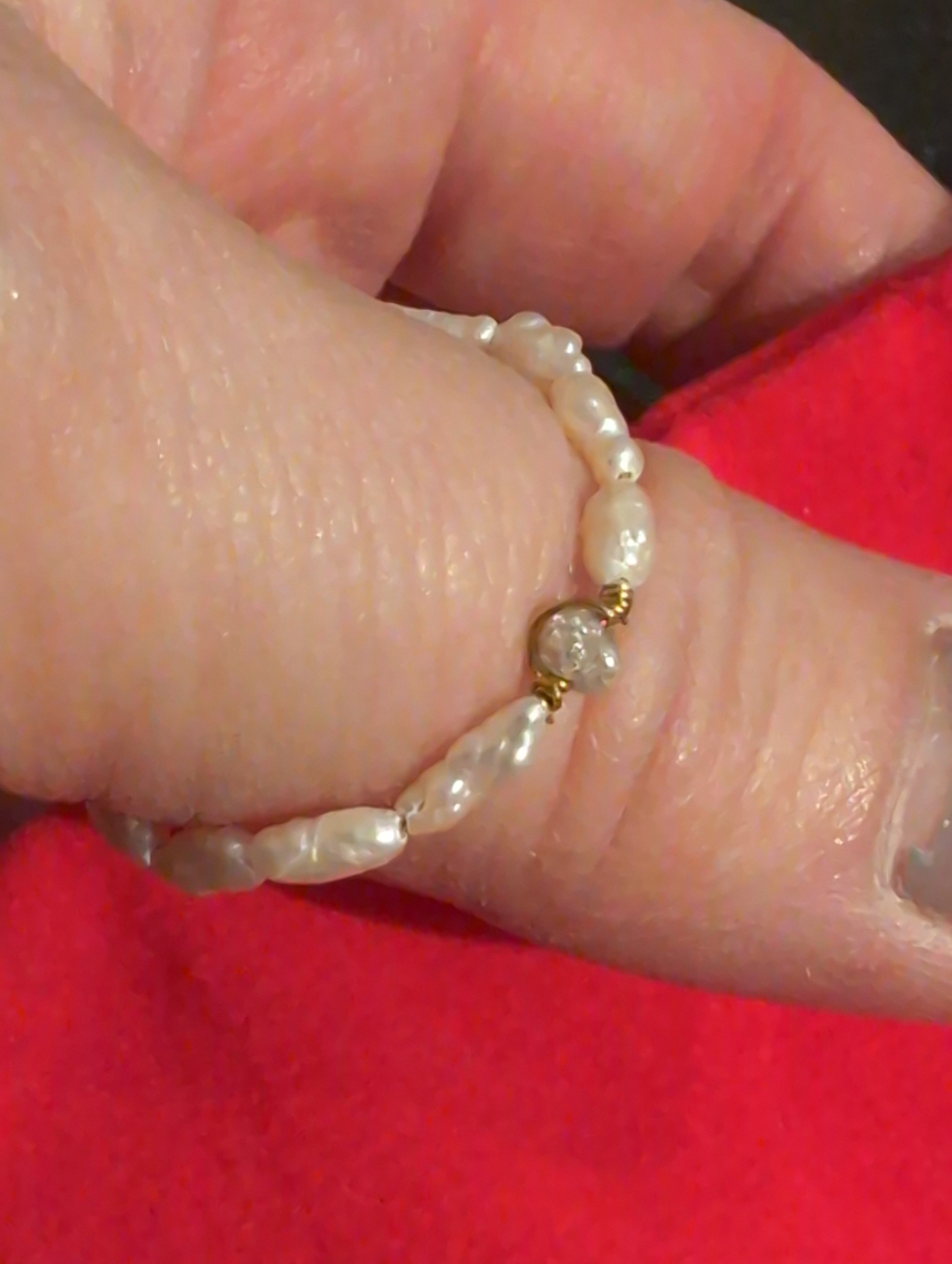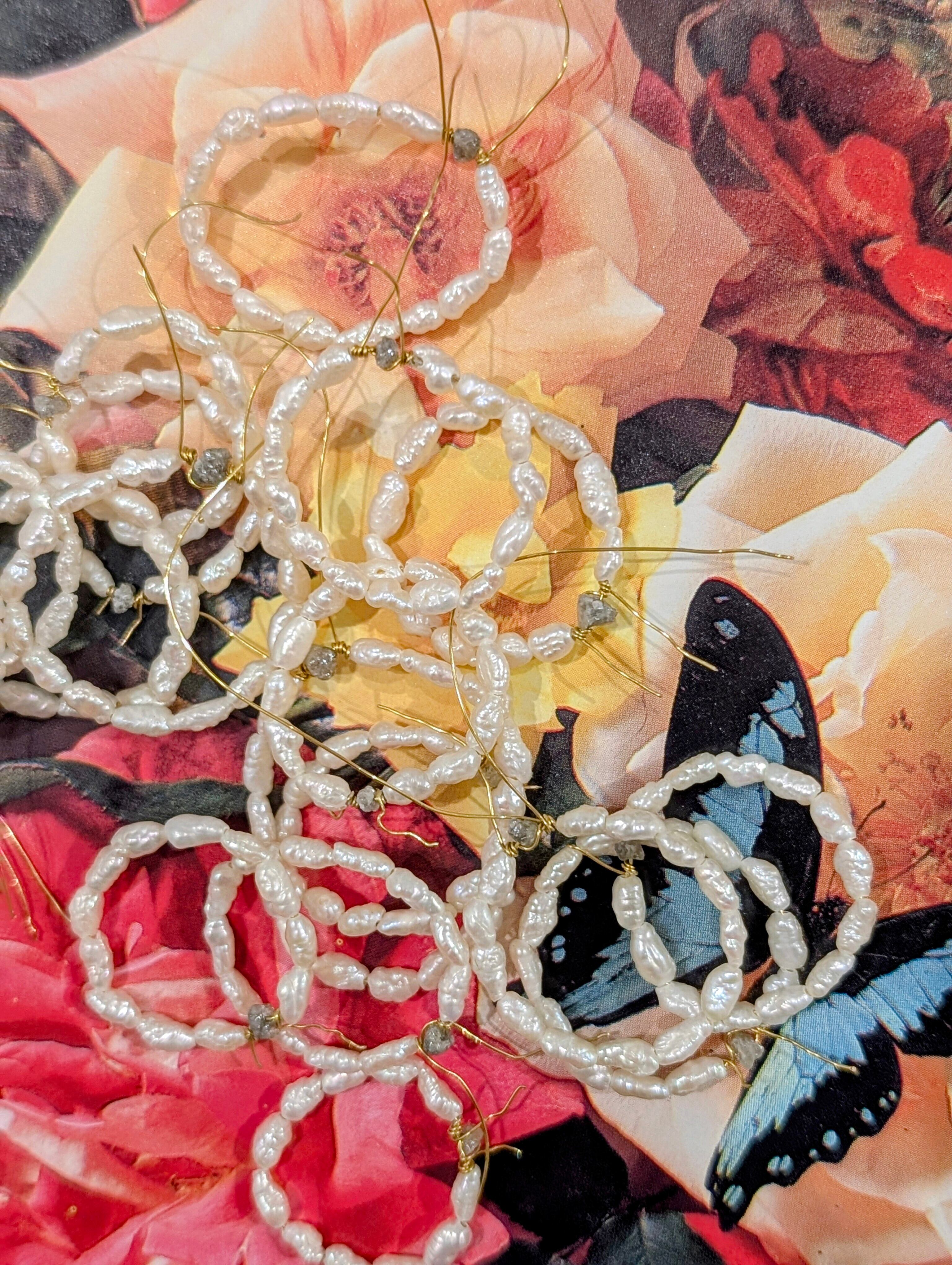 ダイヤモンド原石、天然淡水ライスパール、デザインワイヤー