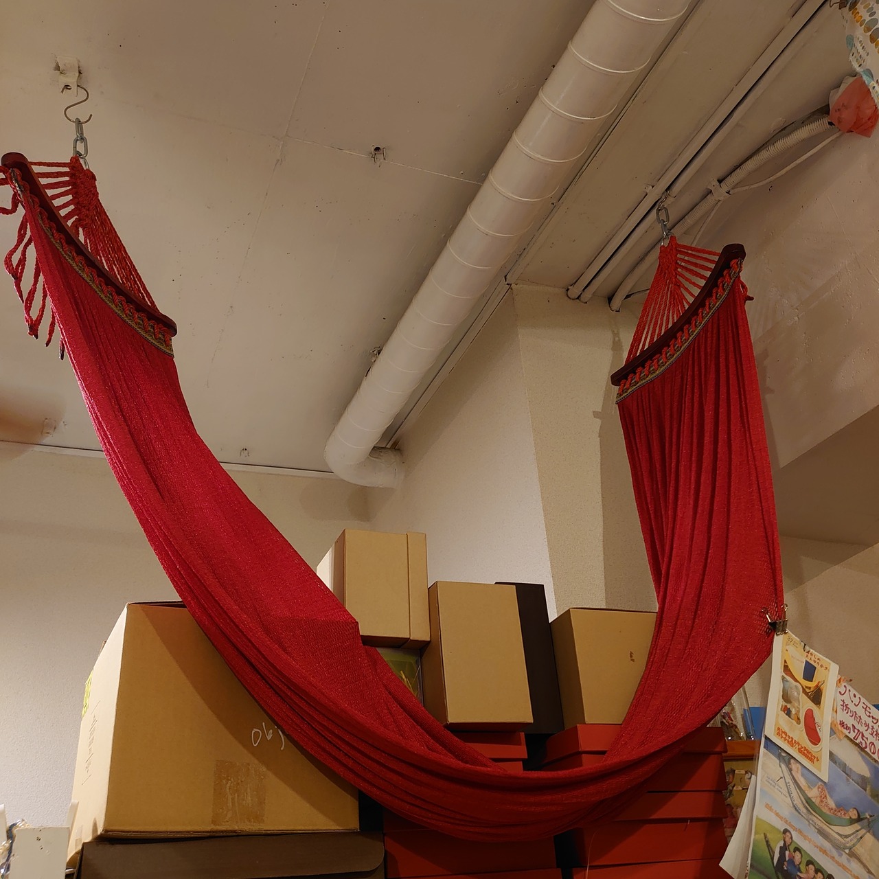 ちなみに店主は専用にクッションやマルチカバーを置いて本を読んだり昼寝したりと楽しんでおります。癒されます。