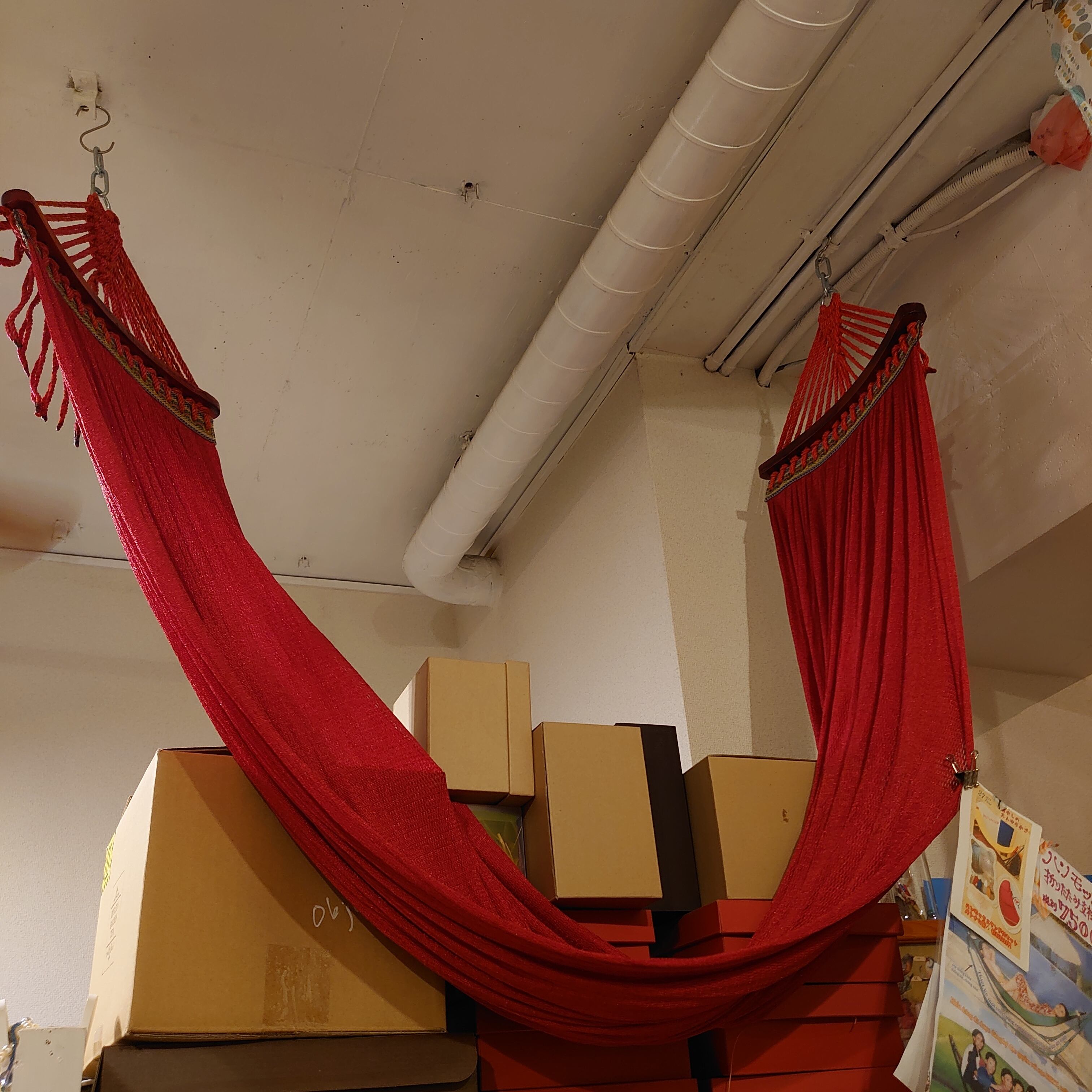 ハンモック レッド & 支柱 スタンド付き フルセット ラスト!木枠デザインがおしゃれ 【 ハンモック 】