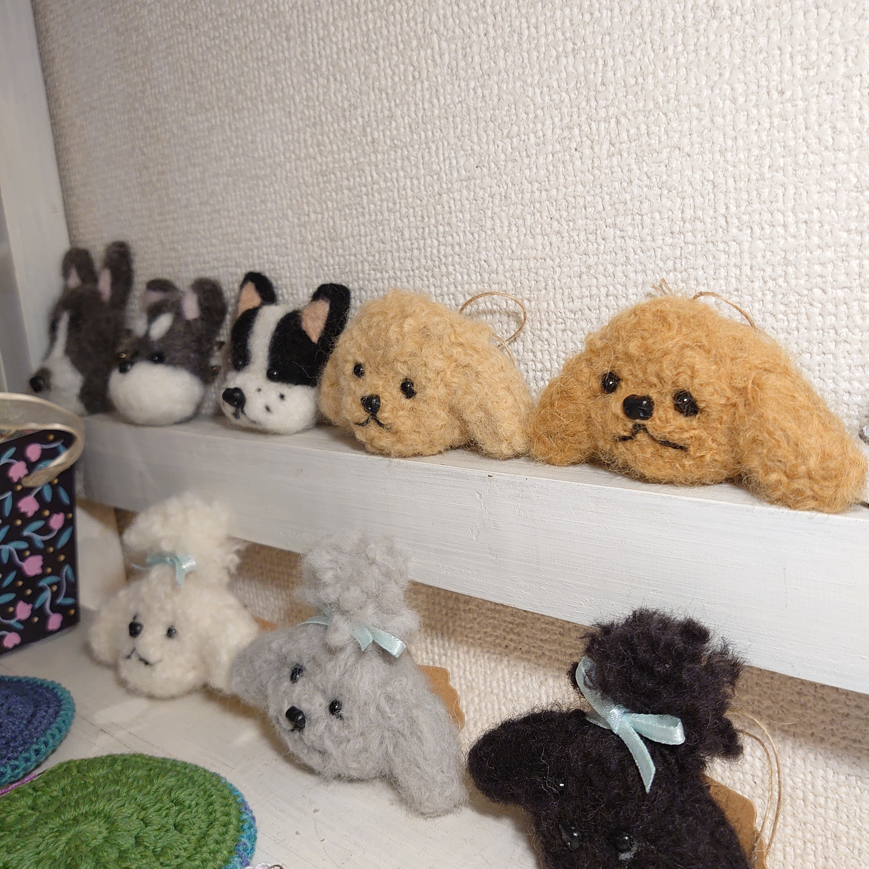 ニードルポイント のフェルトの技を使って作ったかわいい表情としぐさがなんともキュートな トイプードル や、犬のアイテム。