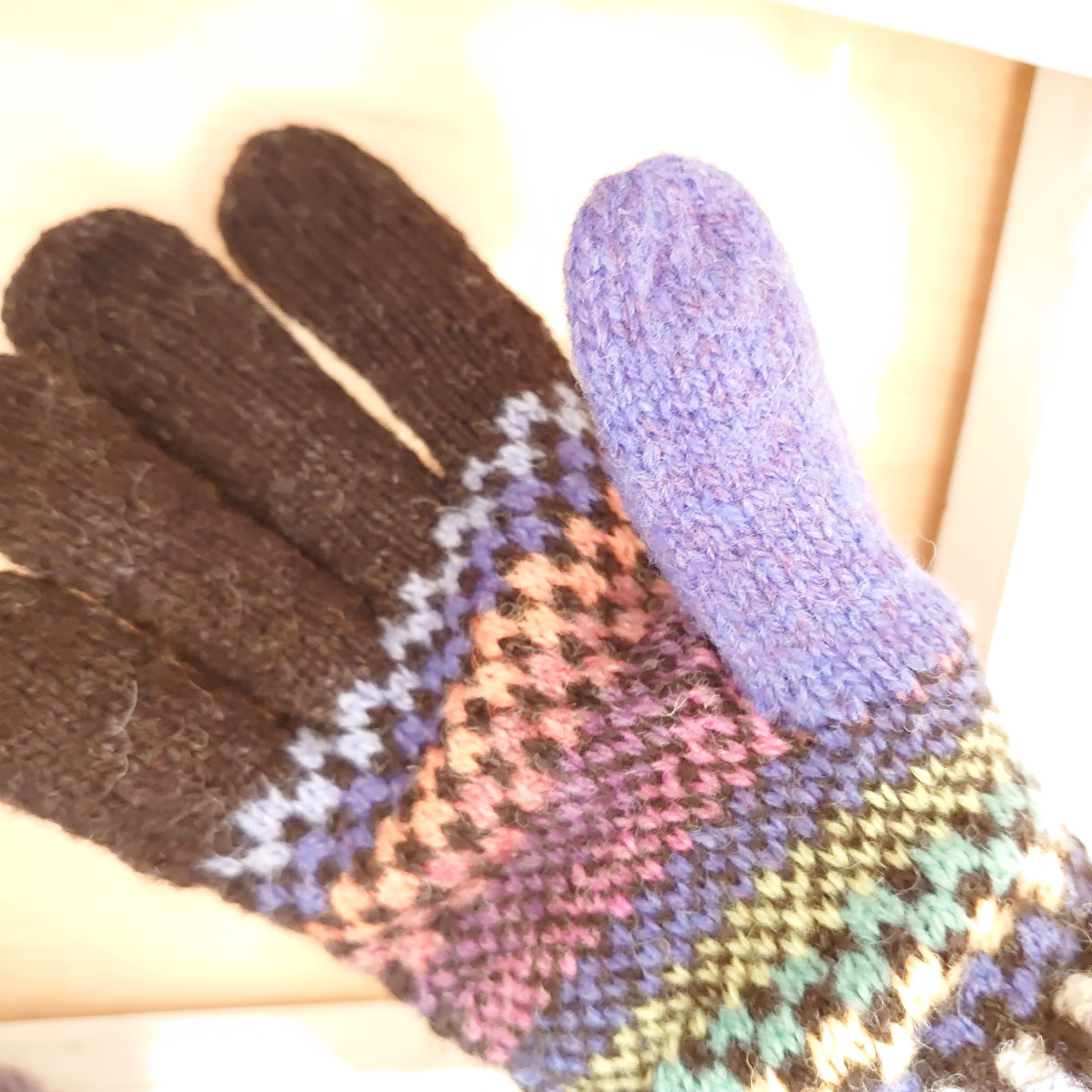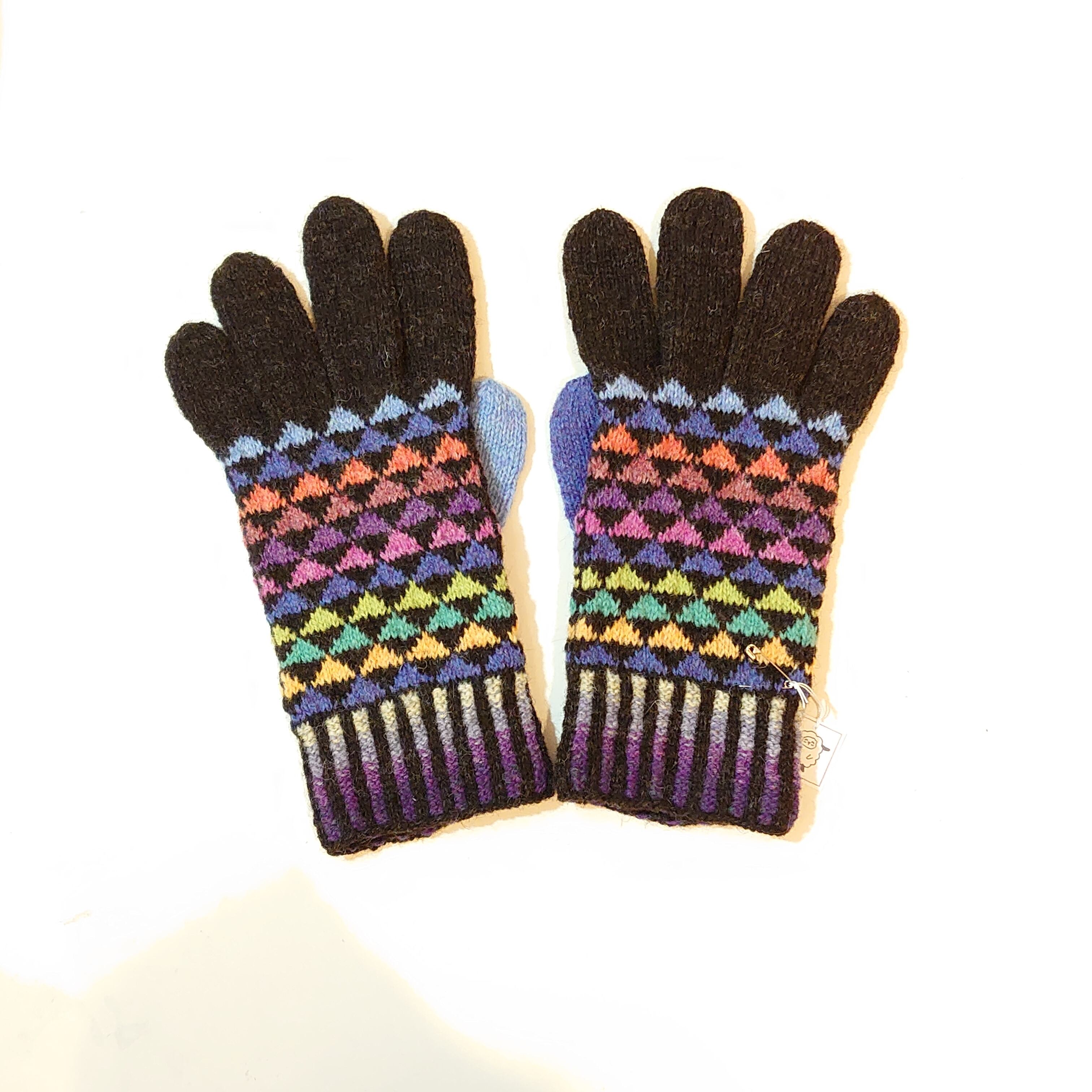 あったかい 手編み 手袋 Lサイズ KAORU さん ハンドメイド オリジナル カラフルトライアングル