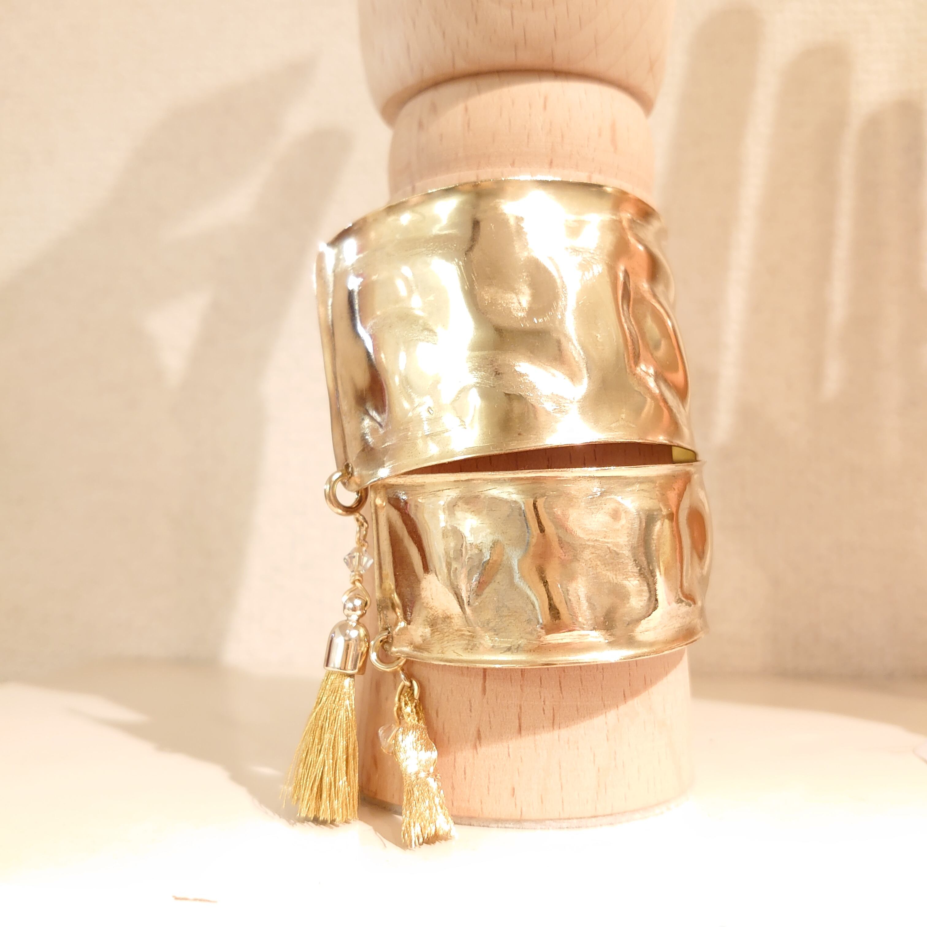 バングル ワイド ブラス タッセル ゴールド おしゃれ ブレスレット 幅広