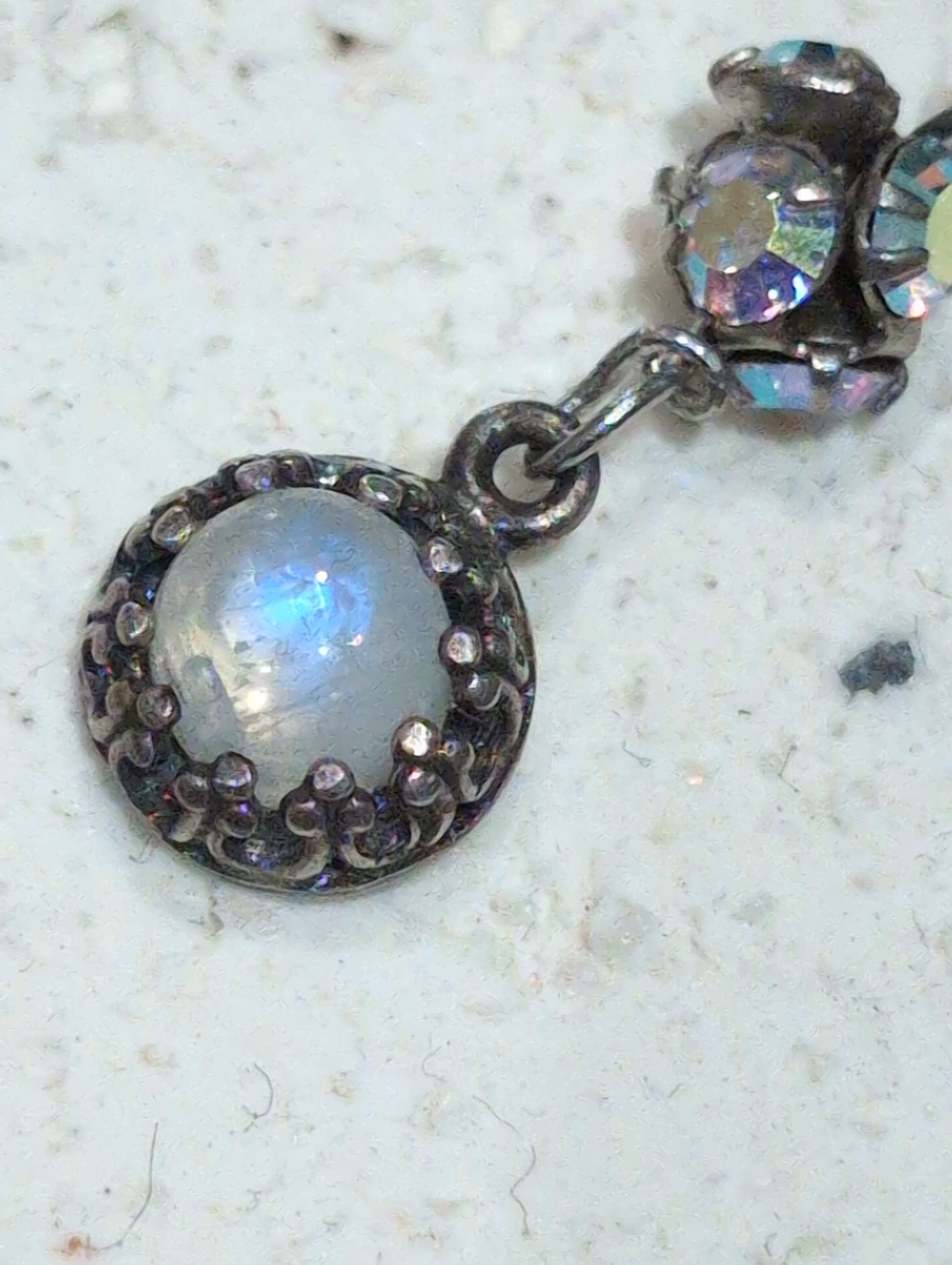 ホワイトラブラドライト、 メッキチェーン、オーロラクリスタルガラス入りボール、他