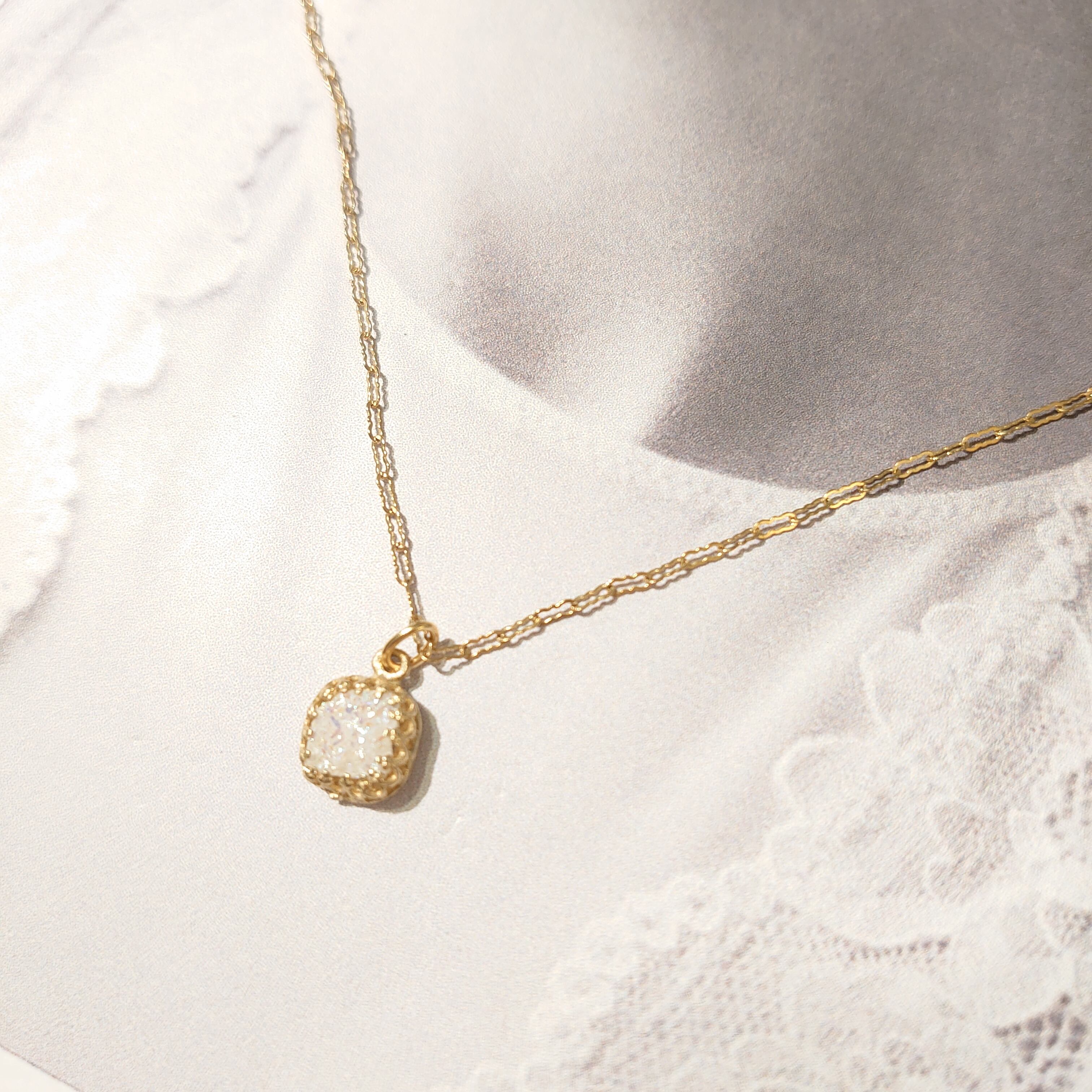 k14gfのチェーンに、キラキラと光るドルジアゲートのペンダントが輝きを添えます。