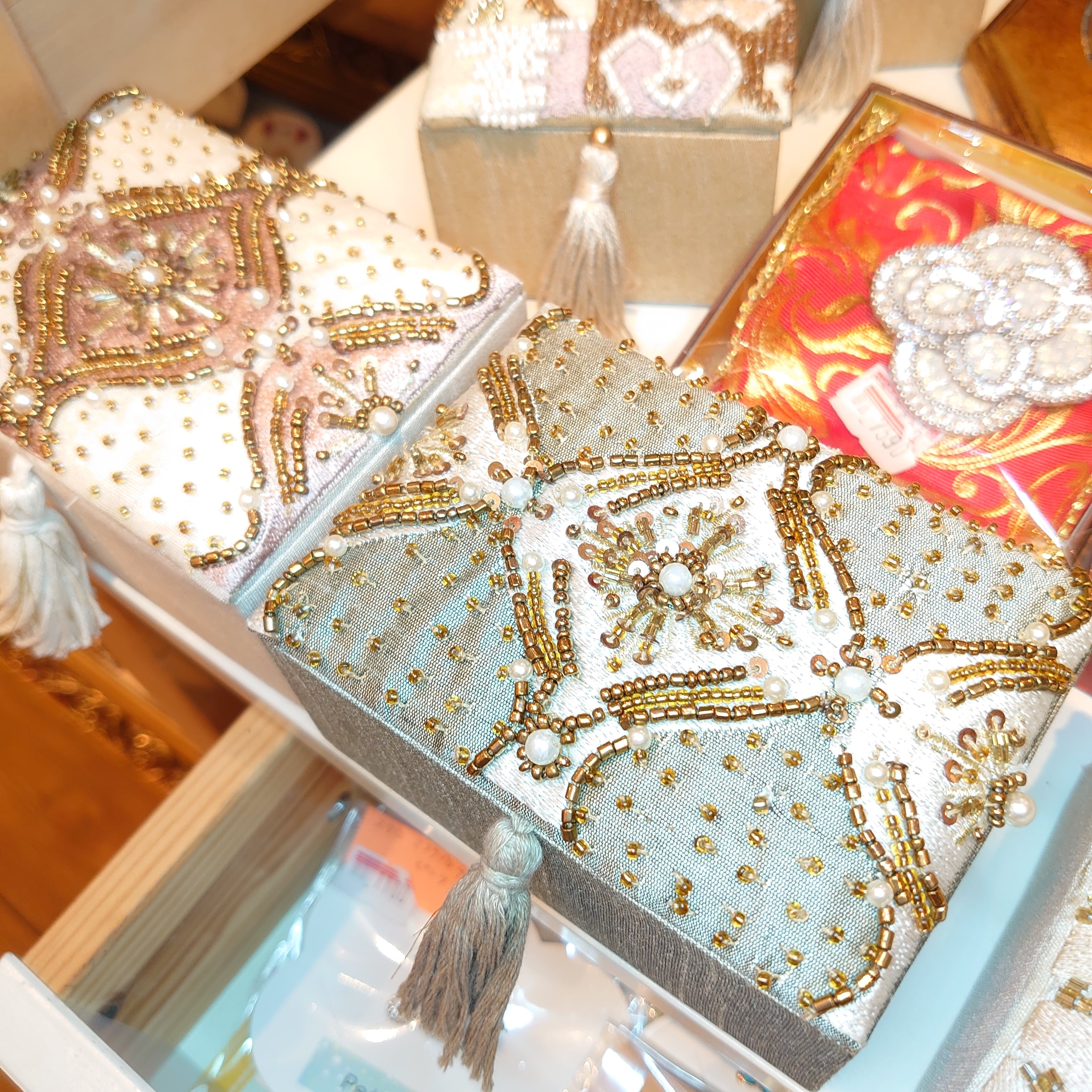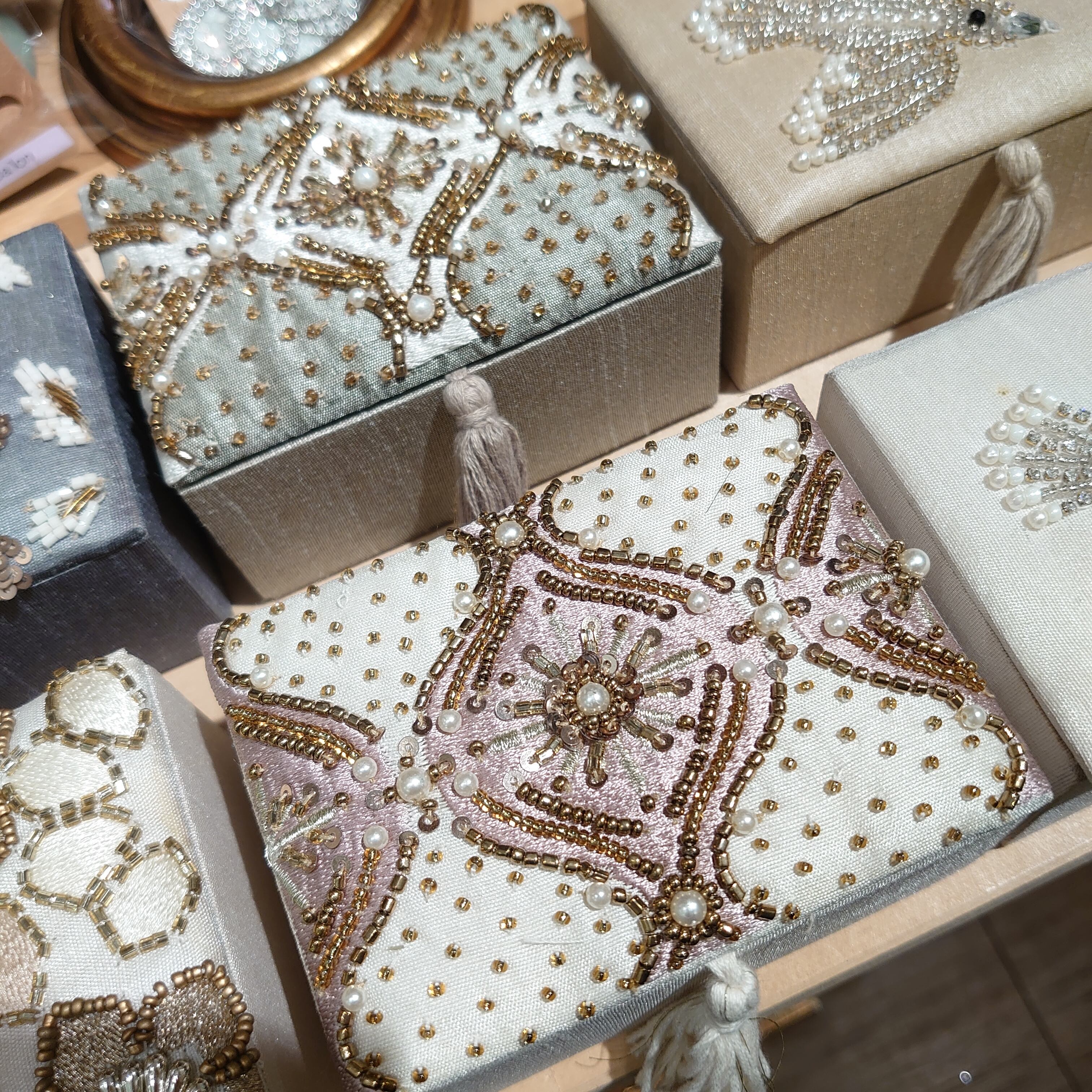 ビーズ刺繍がエレガントな、ジュエリーケース。