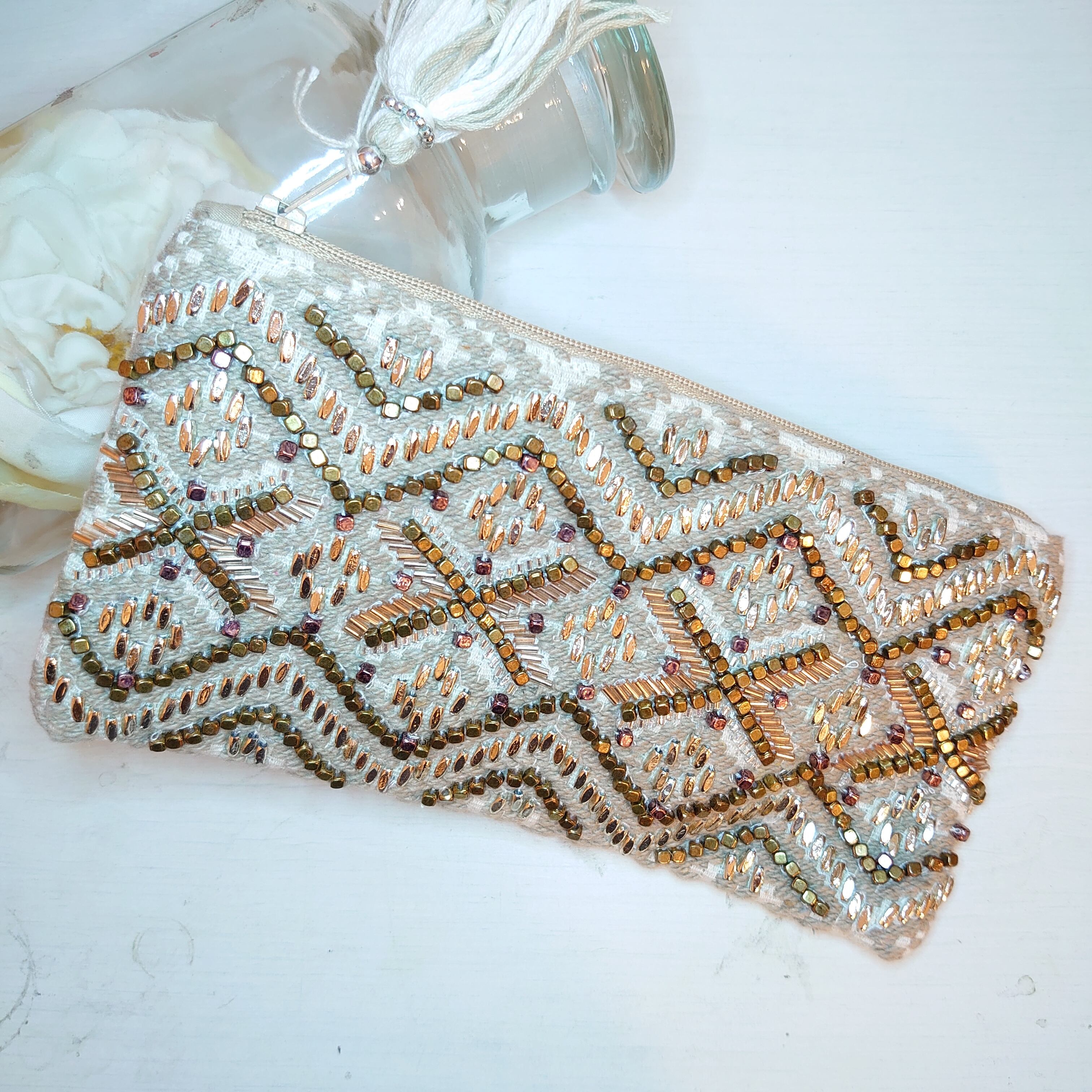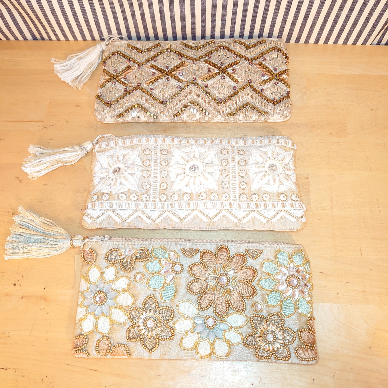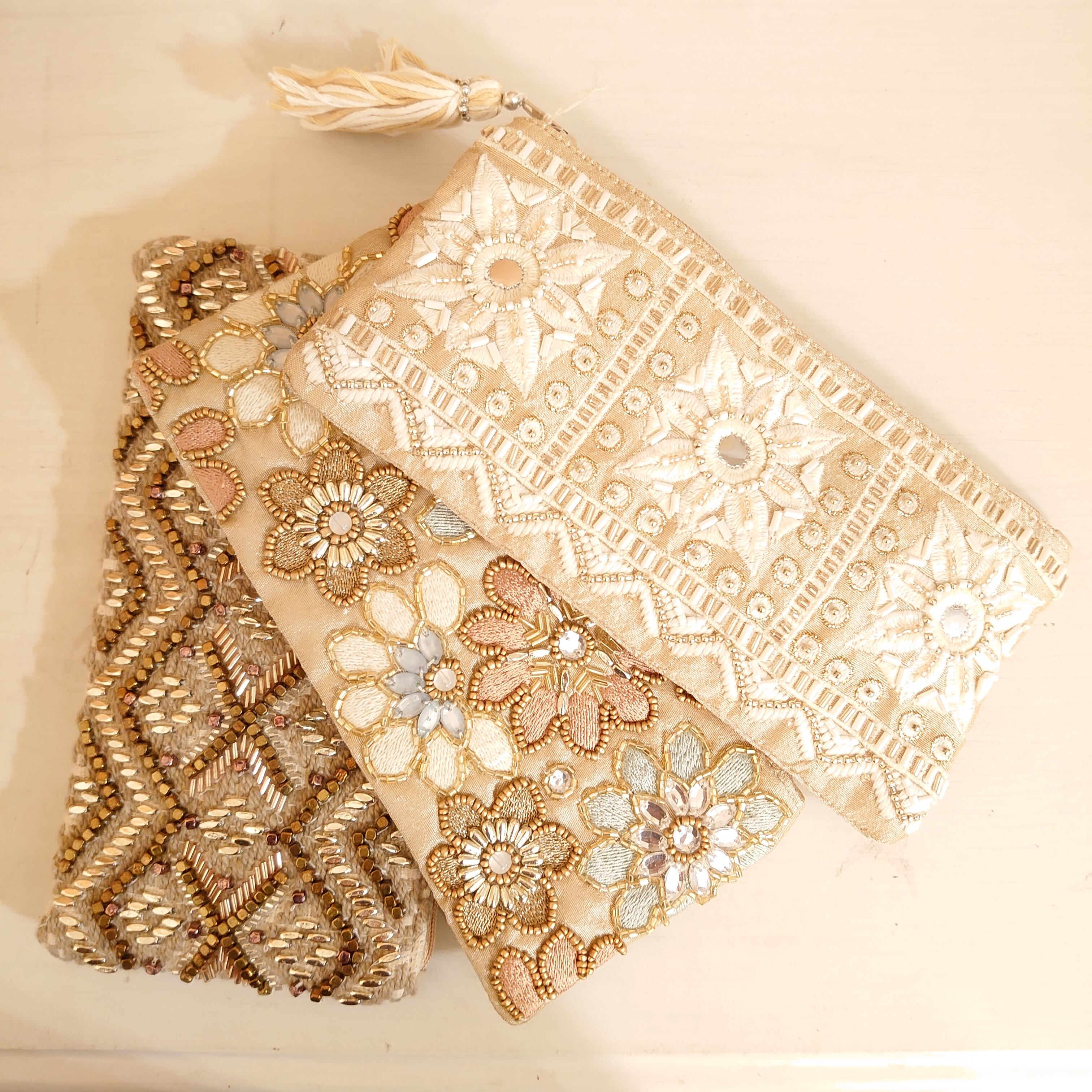ポーチ キラキラ 横長 ゴールド タッセル 付き インド刺繍でゴージャス!