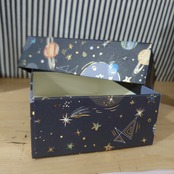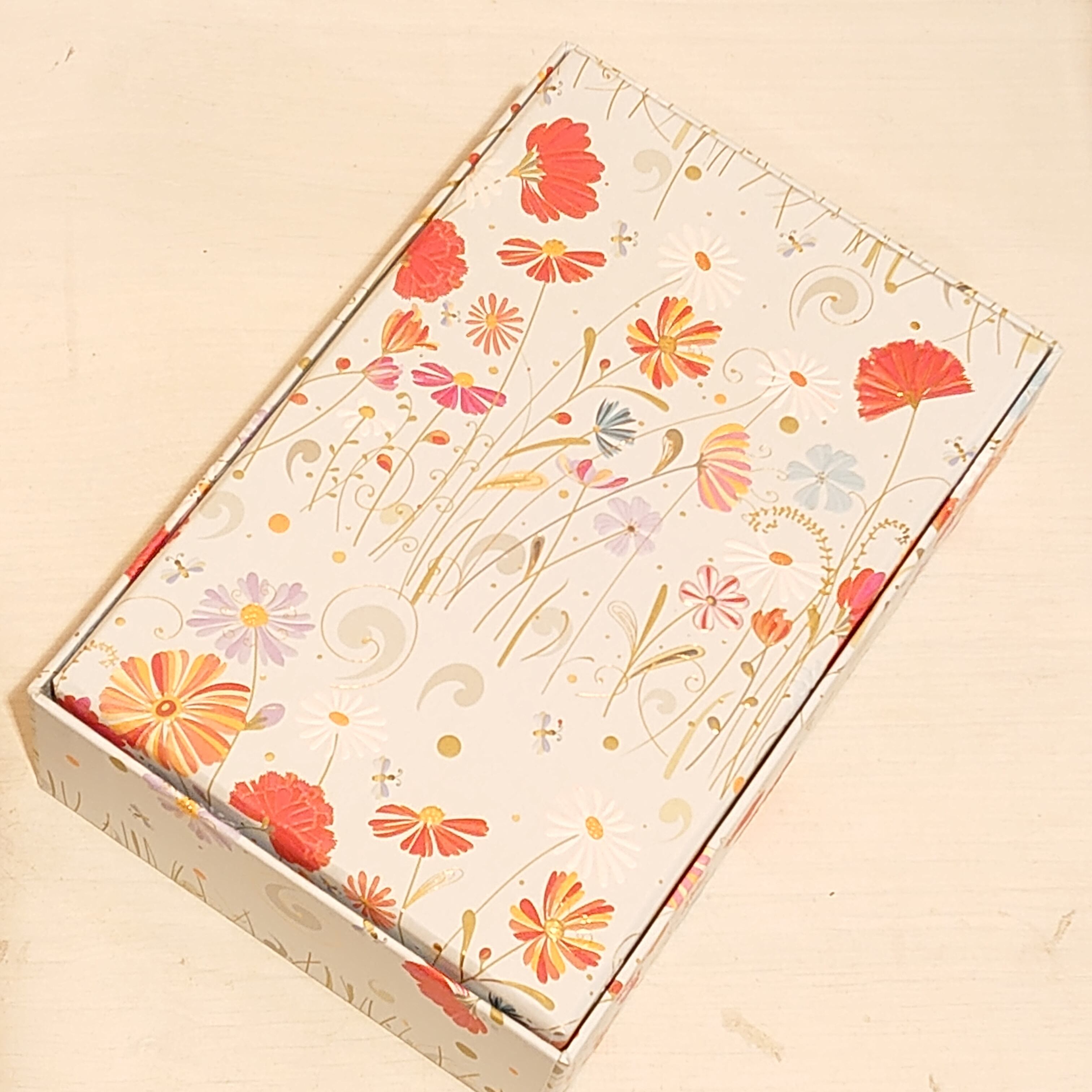ヨーロッパの立体感のあるリッチな印刷のされたラッピングペーパーなどを使った素敵な貼箱です。
