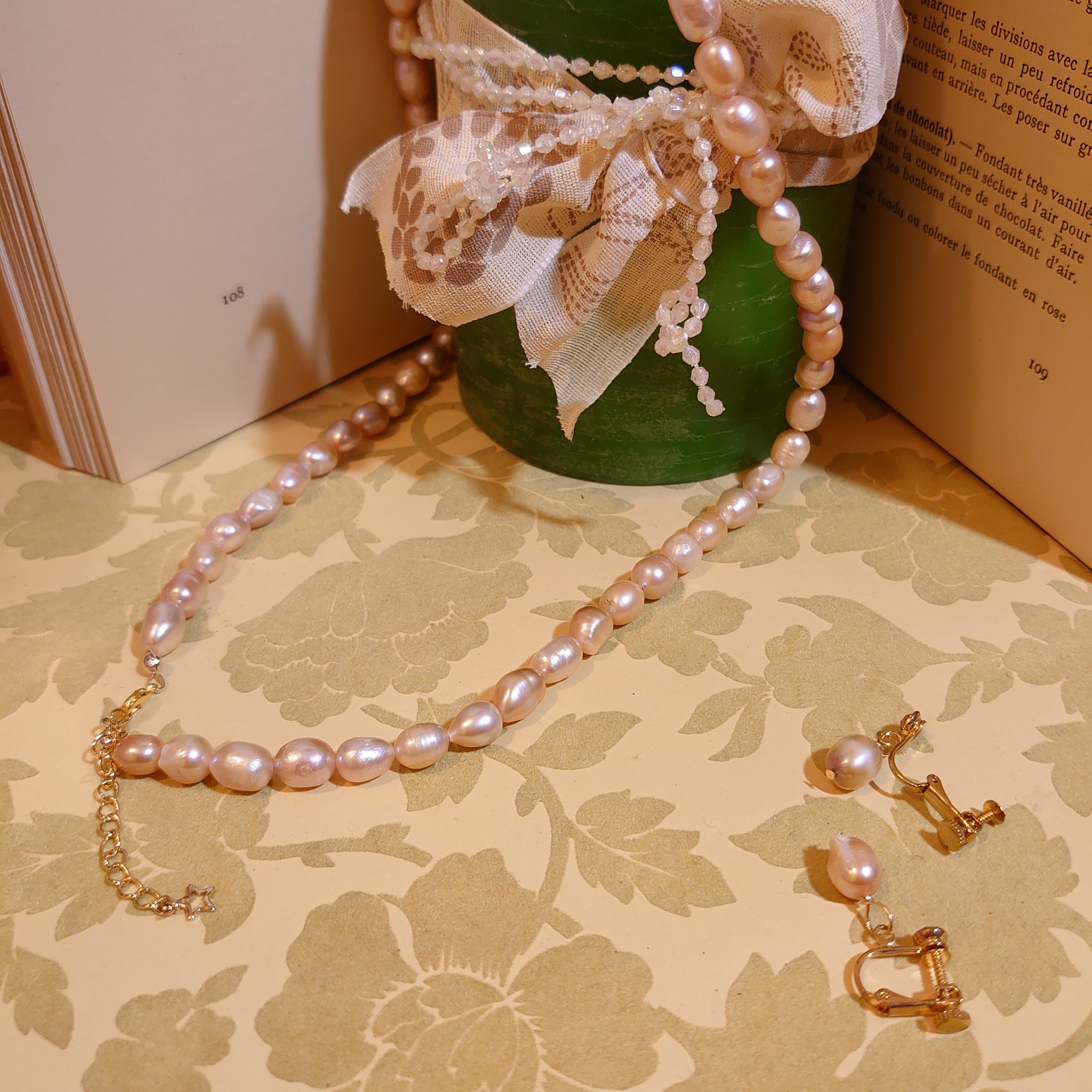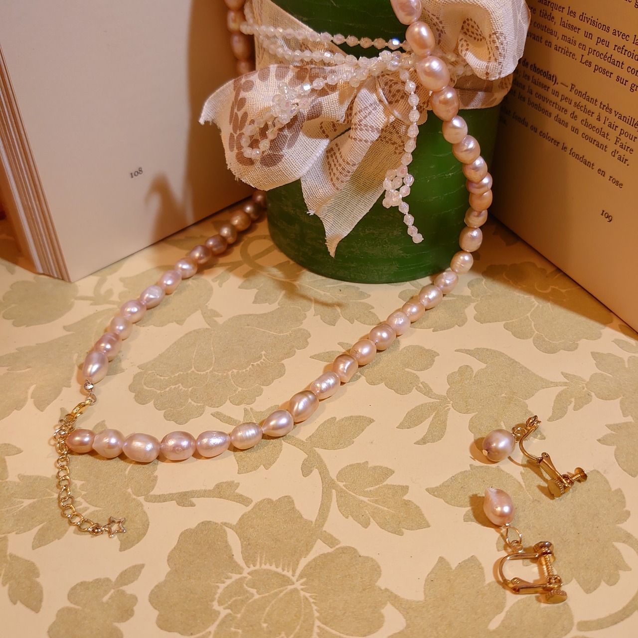 ネックレス 天然 淡水 パール ピンク ポテト型