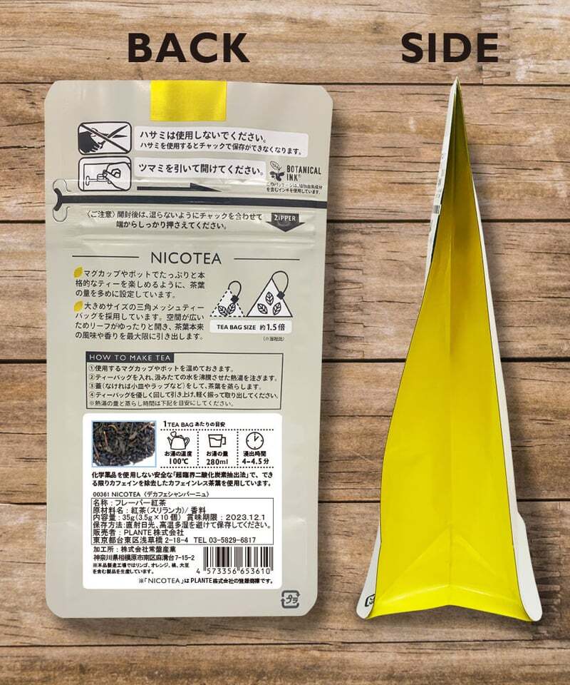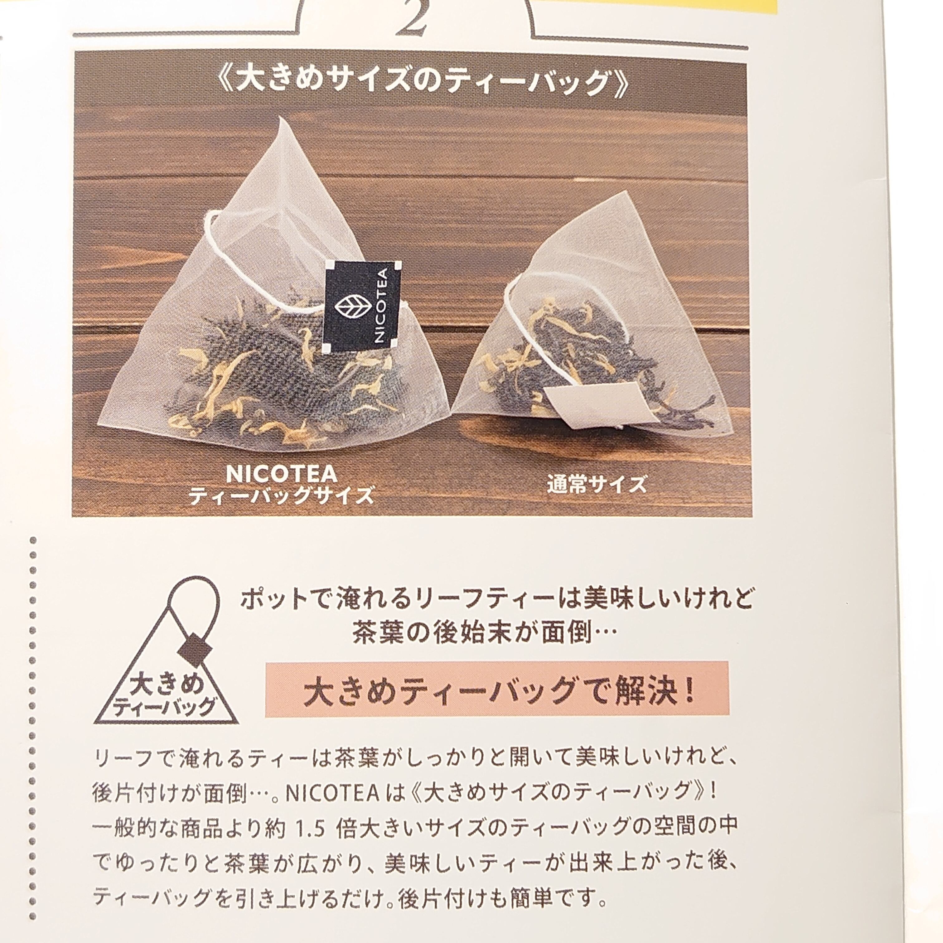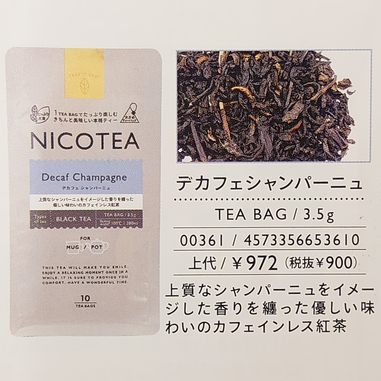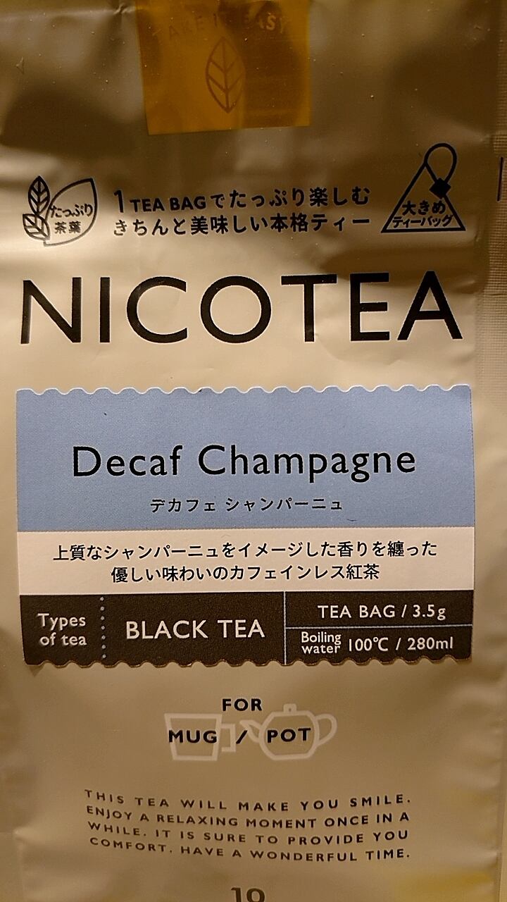 紅茶 【 デカフェ シャンパーニュ 】単品 パック (特殊製法のカフェインレス!) 美味しいたっぷり茶葉 NICOTEA ティーバッグ3,2~4gが10個入り二子玉川土産にもよいのでは?!