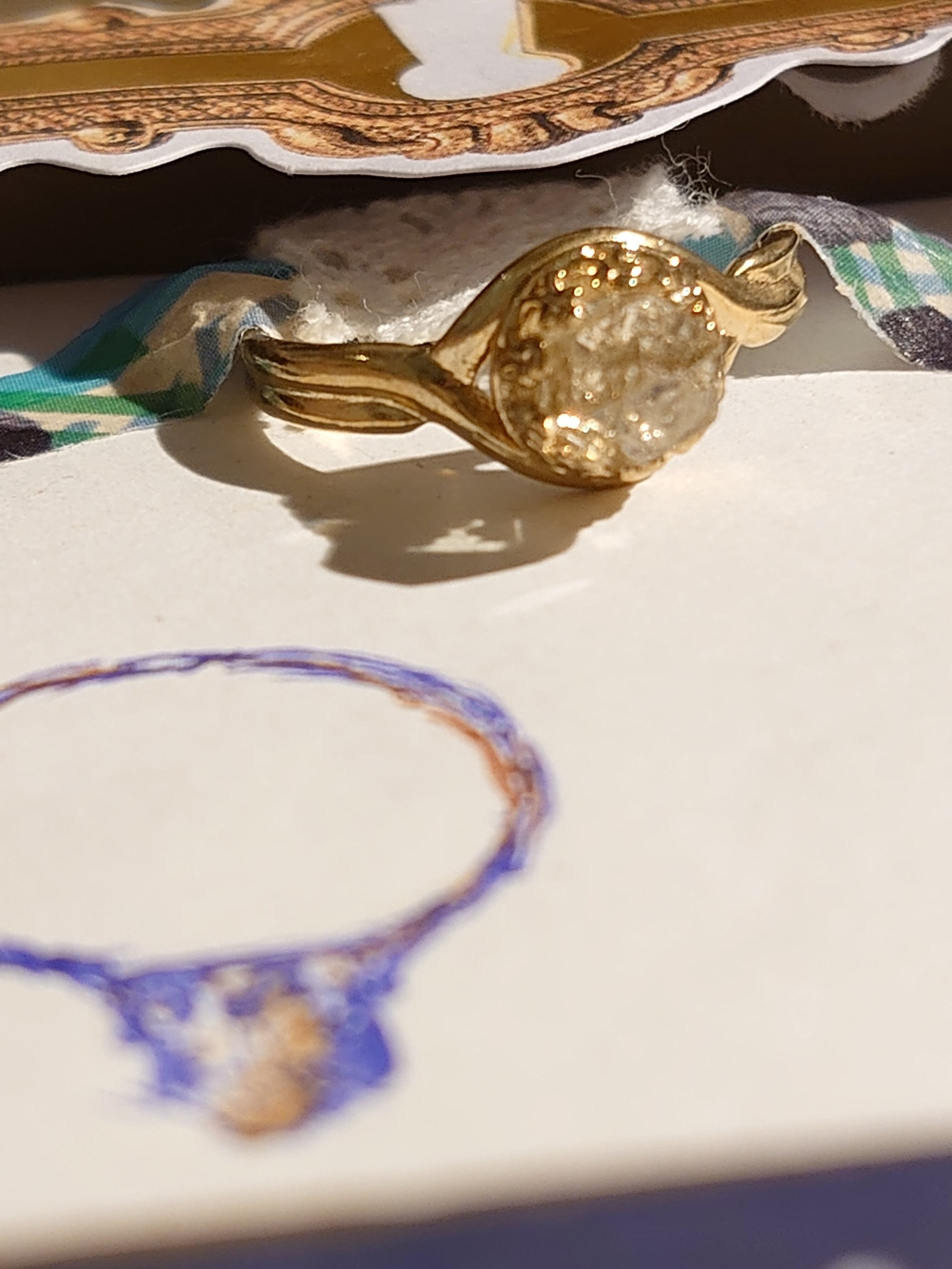 リング 真鍮 ブラス イエロー アパタイト(燐灰石) フリーサイズ ヴィンテージ調 コラージュフレーム付き作品