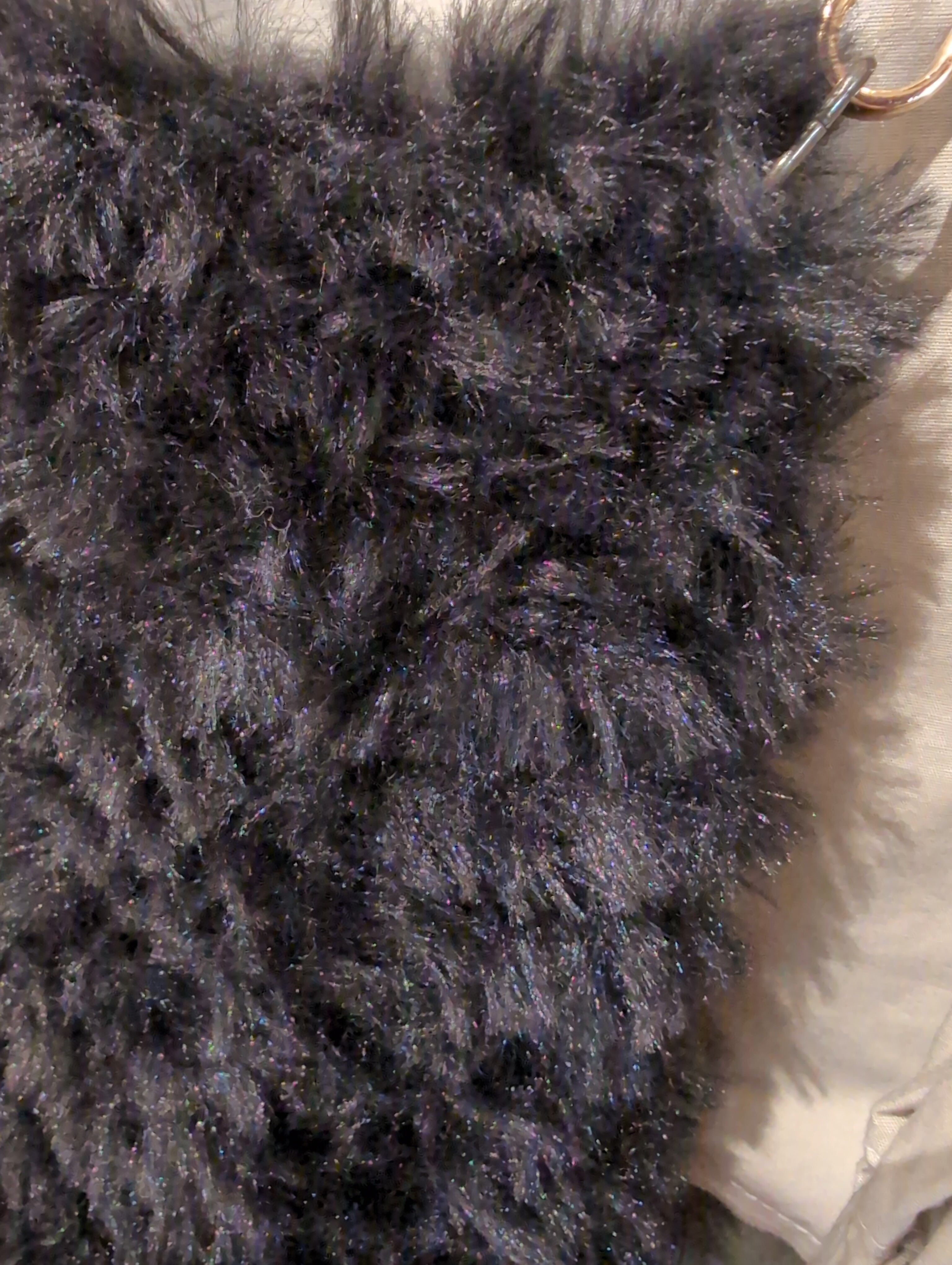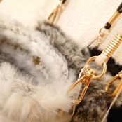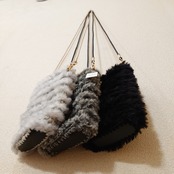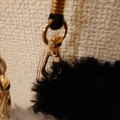 ポリエステル100%のもふもふの手触りが滑らかな人工毛とコードヒモを編んでいます。