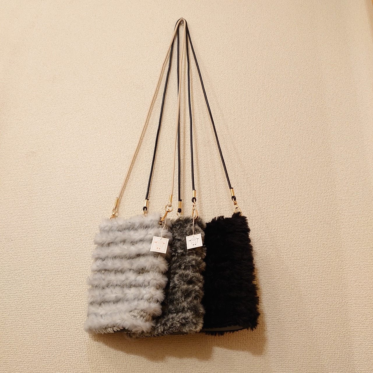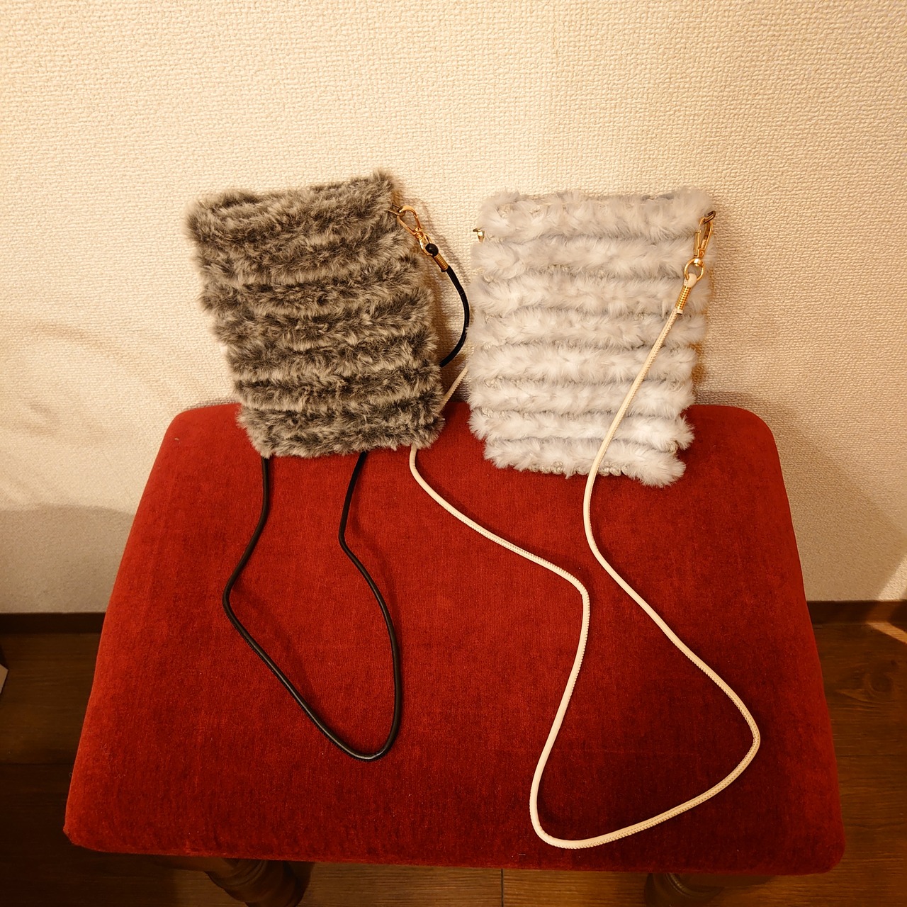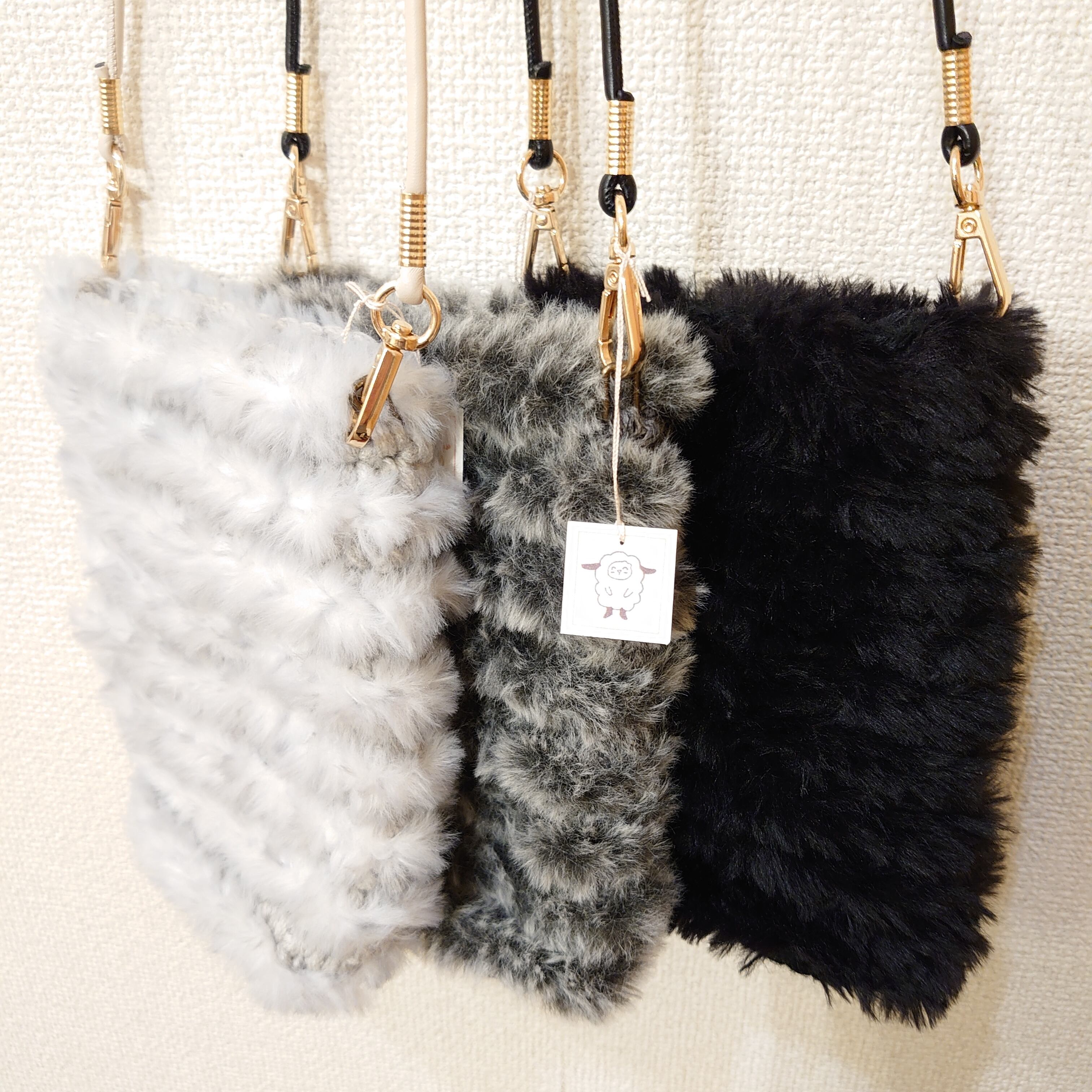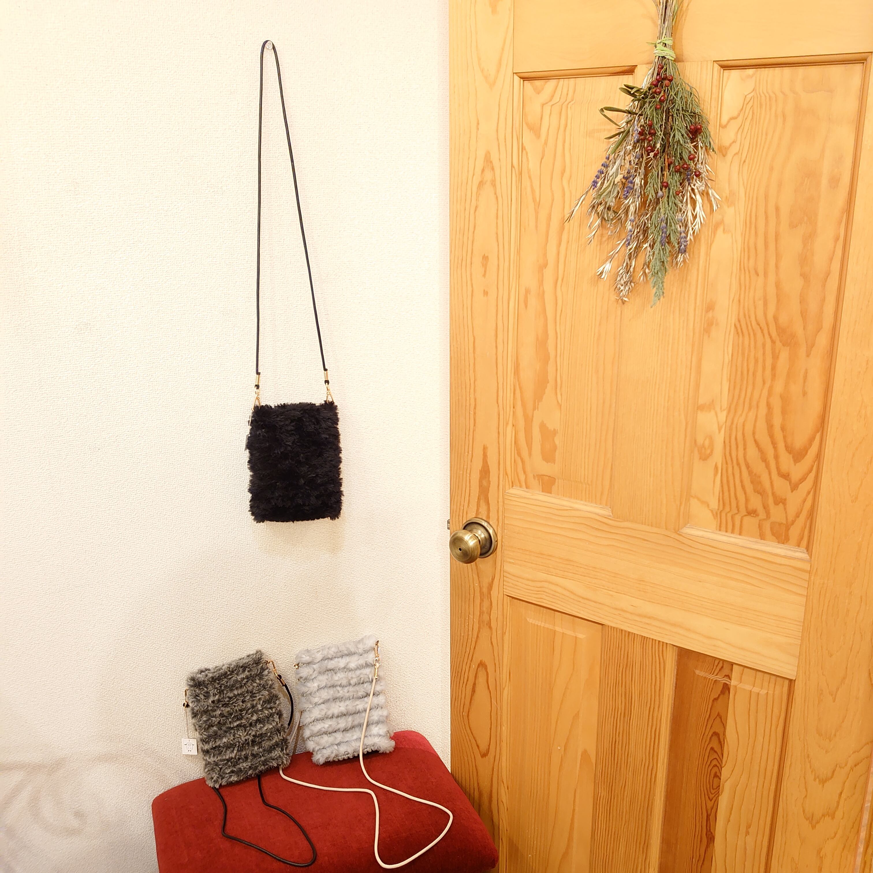 もふもふ スマホ ポーチ ショルダー バッグ 手編み シェール オリジナル KAORUさん ハンドメイド ふわふわもふもふ 素材