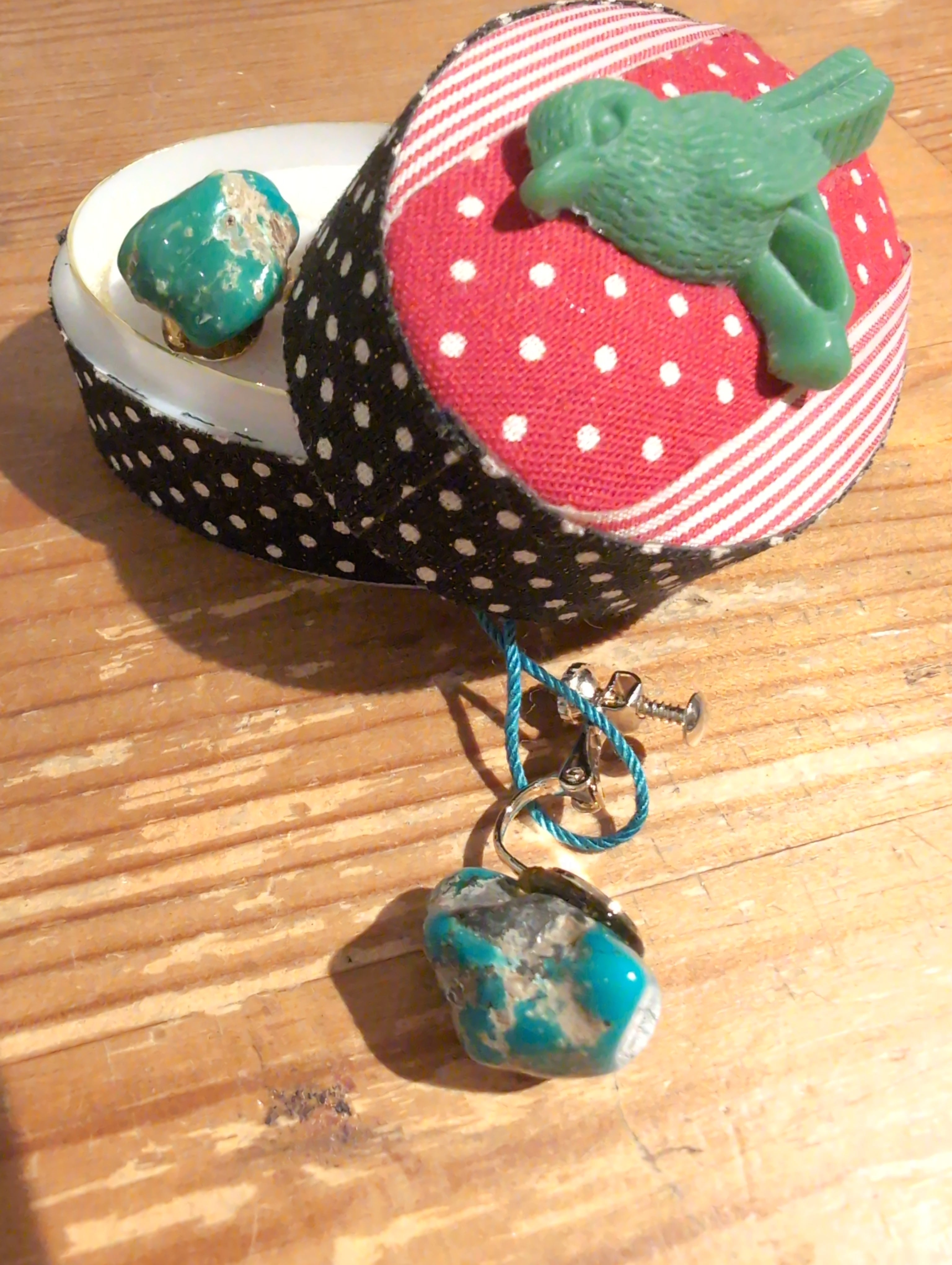 ターコイズは古くから守護石とされ、その持つエネルギーは心を落ち着けるように促すとか。旅のお守りにも良いという言い伝えありらしいです。