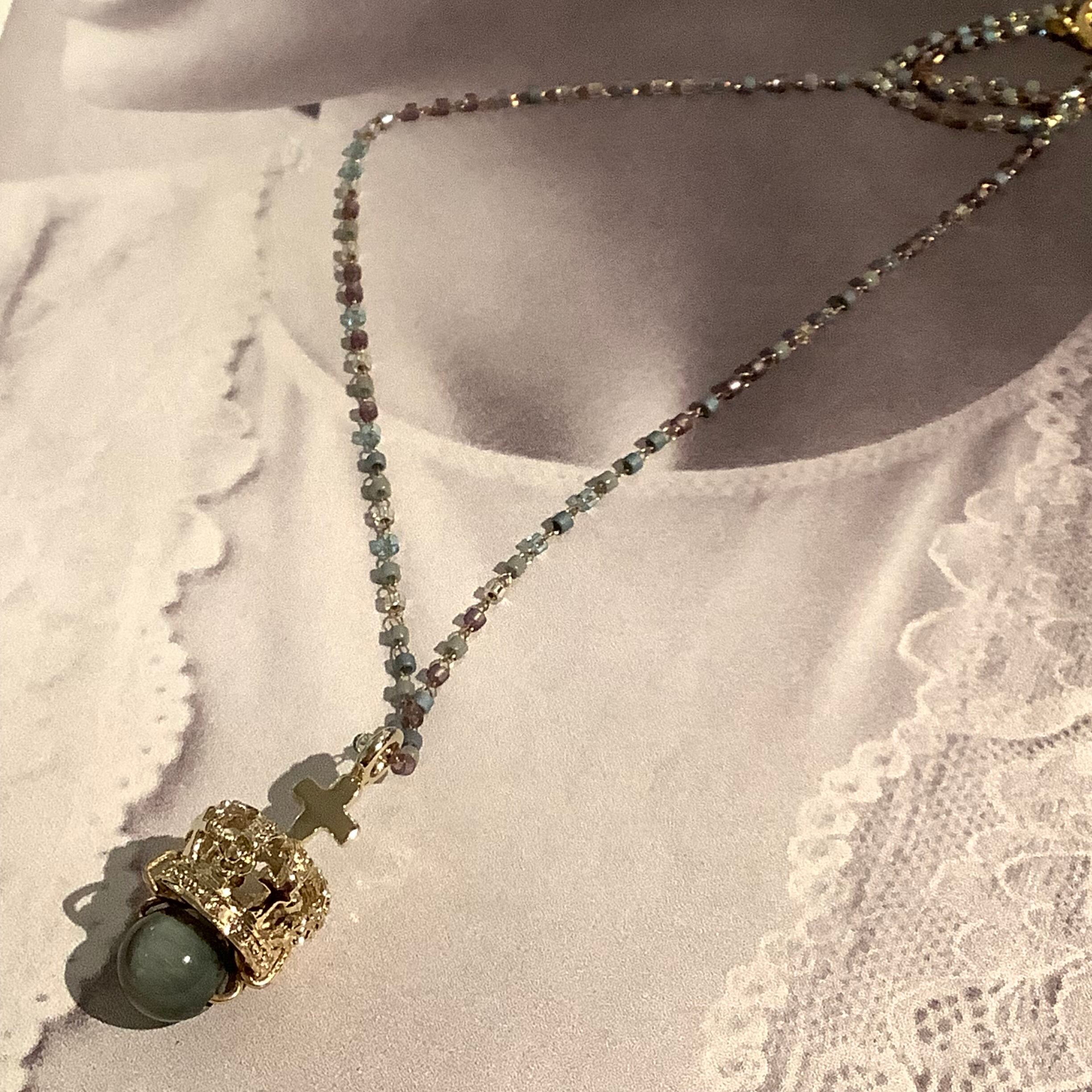 このペンダントは、チェーンに色々な色が含まれているのでどんな色やスタイルにもマッチし、普段使いはもちろん、特別な日にもぴったりです!