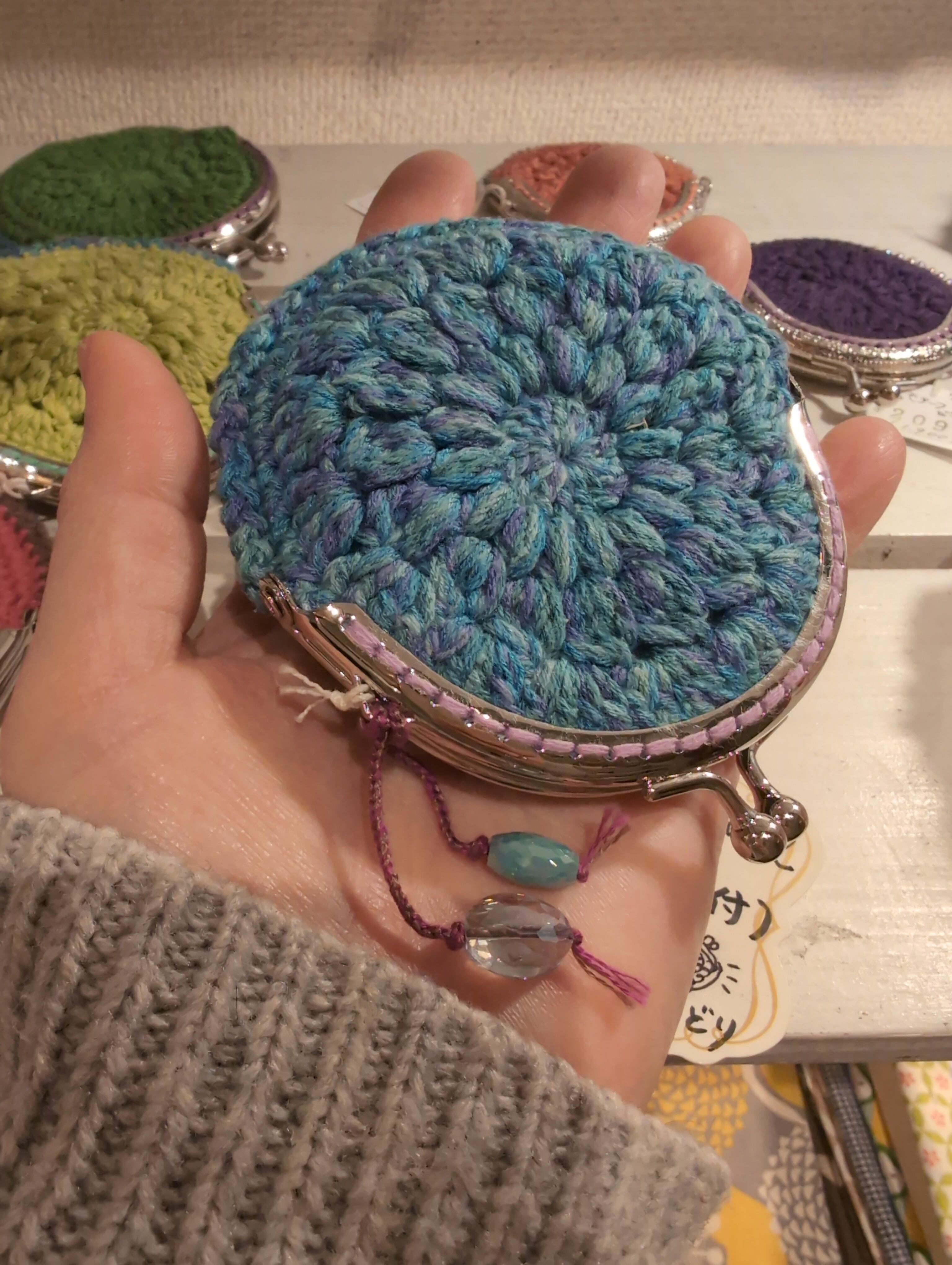 がま口 手編みモチーフ編み大 とってもかわいい!