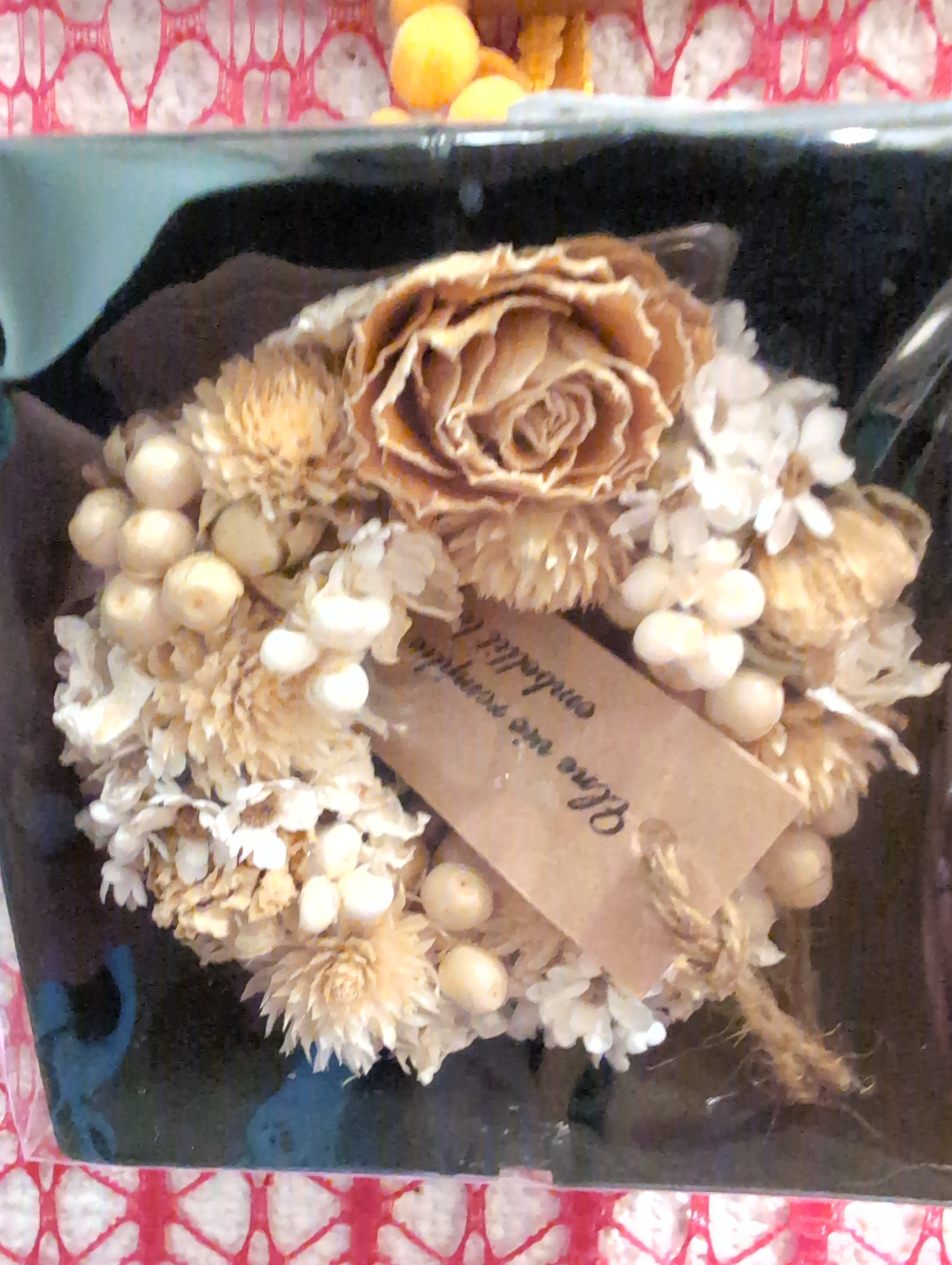 ドライフラワーは湿気と日光に弱いので、それらを避けて飾ってくださいませ。