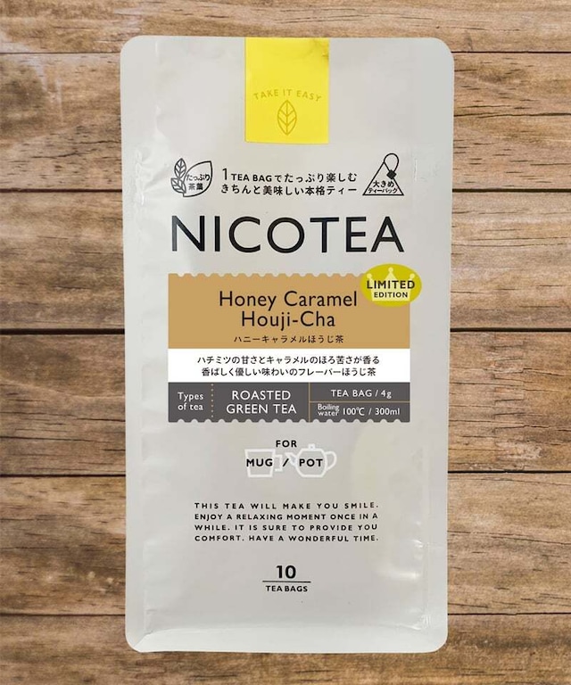 紅茶 【 限定風味!ハニーキャラメルほうじ茶】単品 パック 美味しいたっぷり茶葉 NICOTEA ティーバッグ3,2~4gが10個入り二子玉川土産にもよいのでは?!